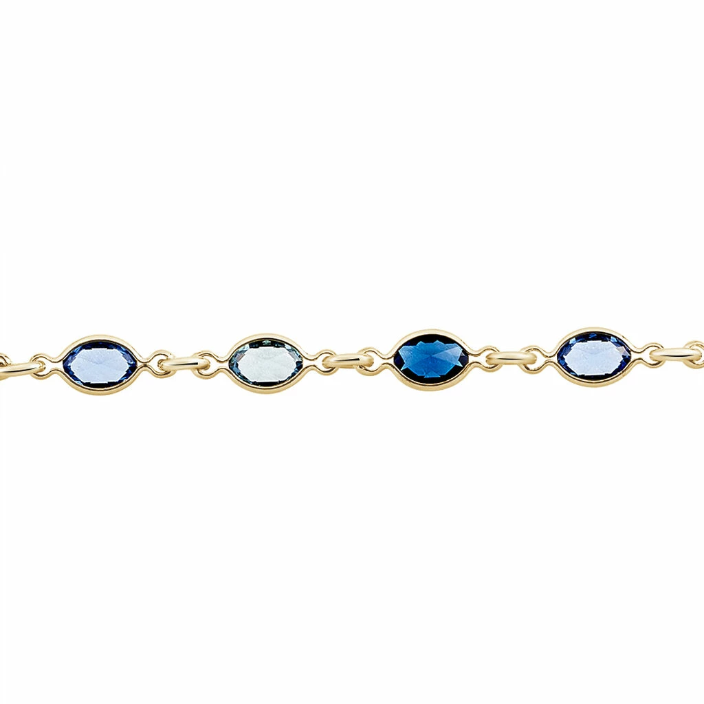 Bracelet Plaqué Or Jaune Alterne Pierres Bleus 18cm