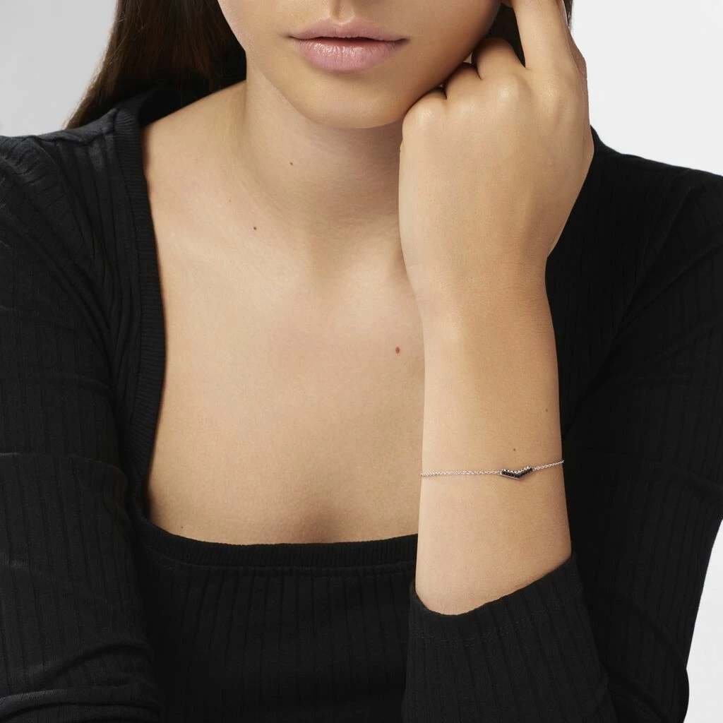 Bracelet Argent Blanc 925/1000 Forme Double Ailes De Mouette Effet Perle Et Pavage Oxydes De Zirconium Noirs 18.5cm