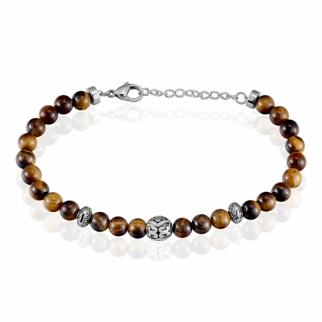 Bracelet Acier Blanc Gris Boules Pierres œil De Tigre 22cm
