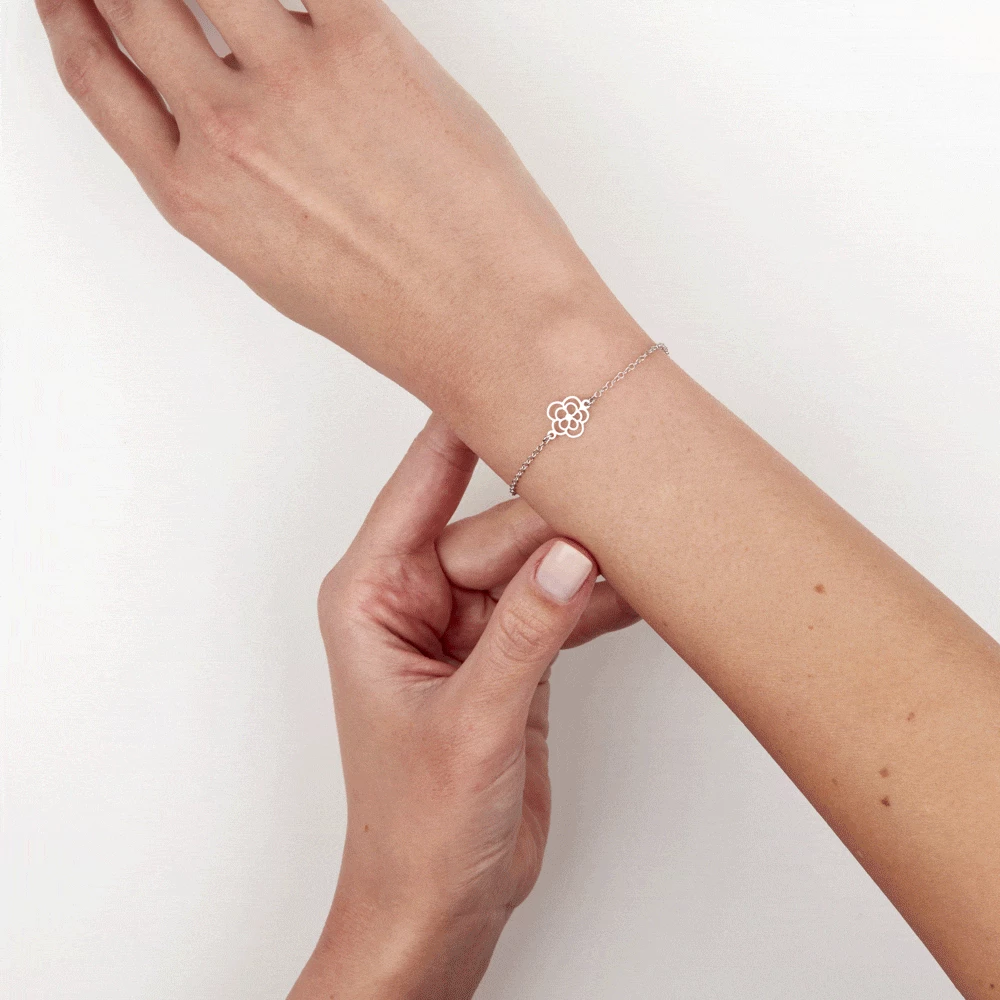 Bracelet Argent Blanc 925/1000 Fleur Ajouree Maille Forcat 19cm