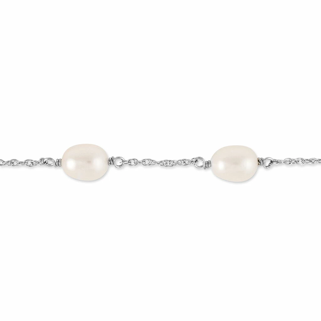 Bracelet Argent Blanc 925/1000 Perles De Culture 19cm