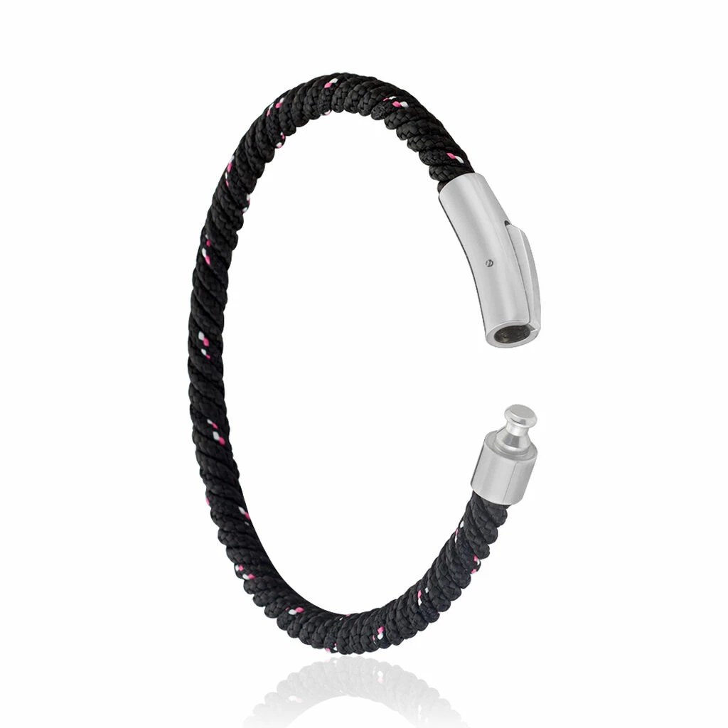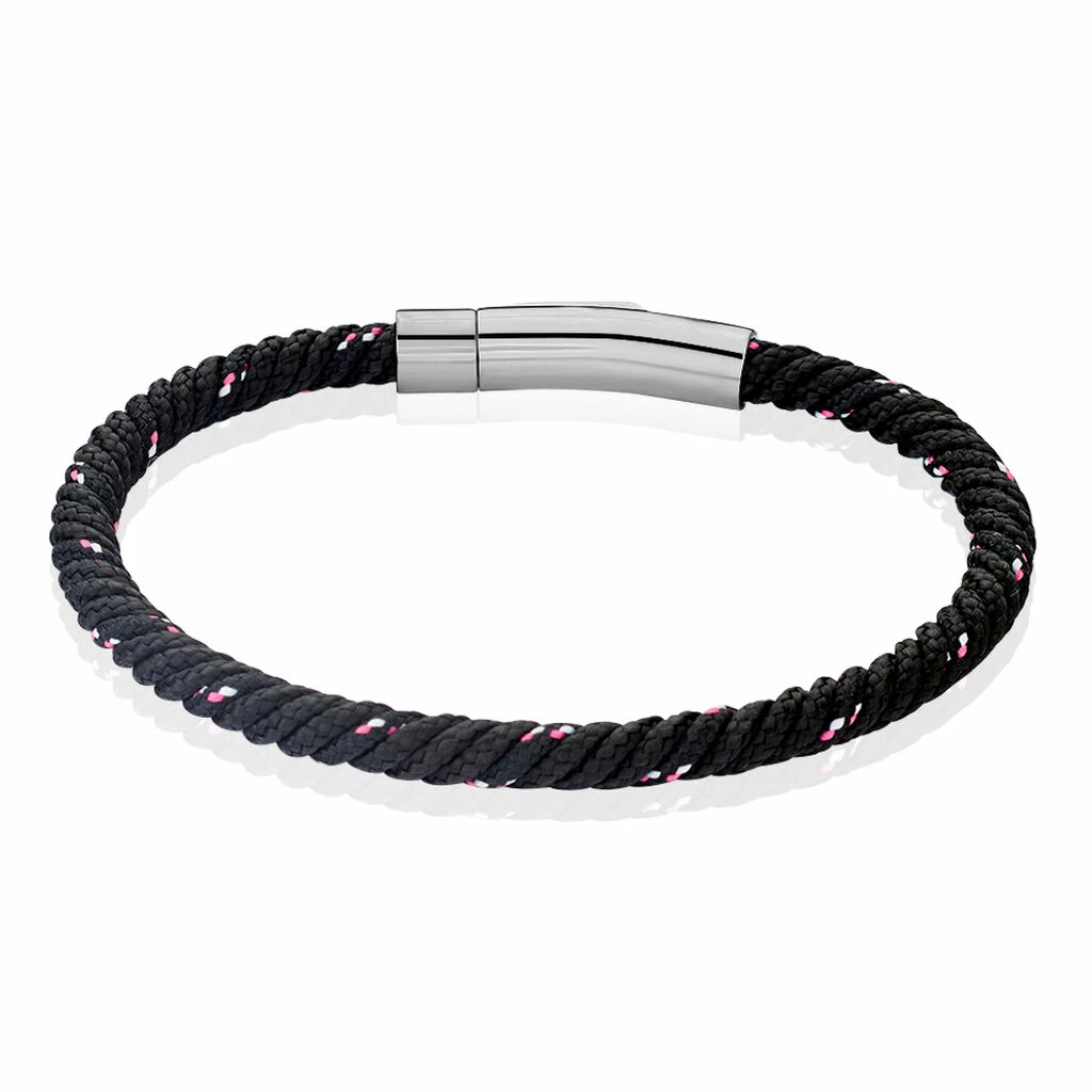 Bracelet Acier Torsade Noire Blanche Et Rose 21cm