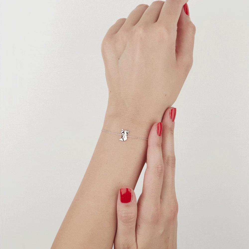 Bracelet Argent Blanc 925/1000 Renard Origami Maille Forcat 18.5cm