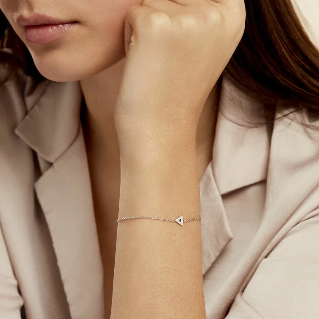 Bracelet Argent Blanc 925/1000 Triangle Ajoure Maille Forcat 18.5cm