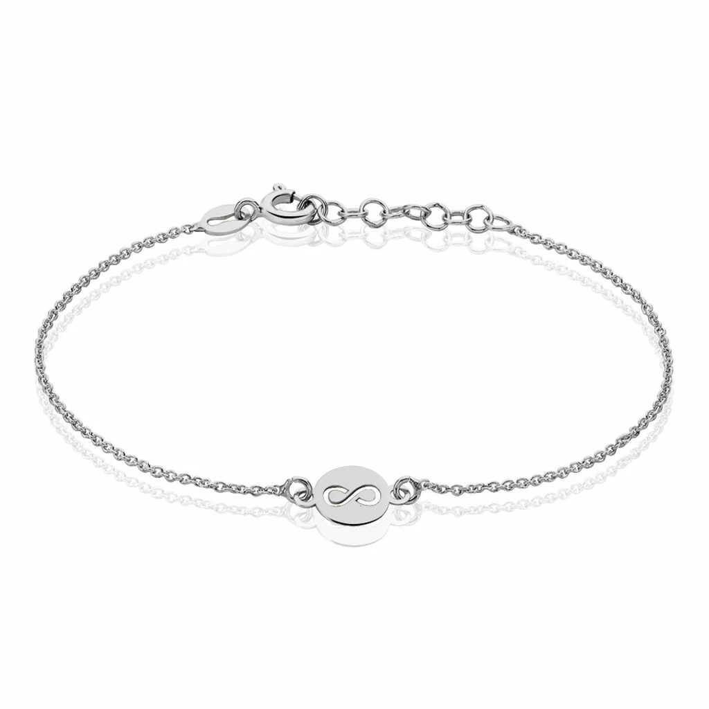Bracelet Argent Blanc 925/1000 Pastille Motif Infini Ajoure Maille Forcat 18cm