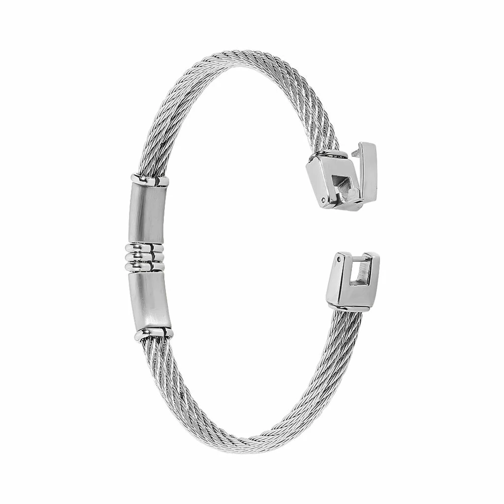 Bracelet Acier Victor Double Cables Gris Barette Acier 21cm