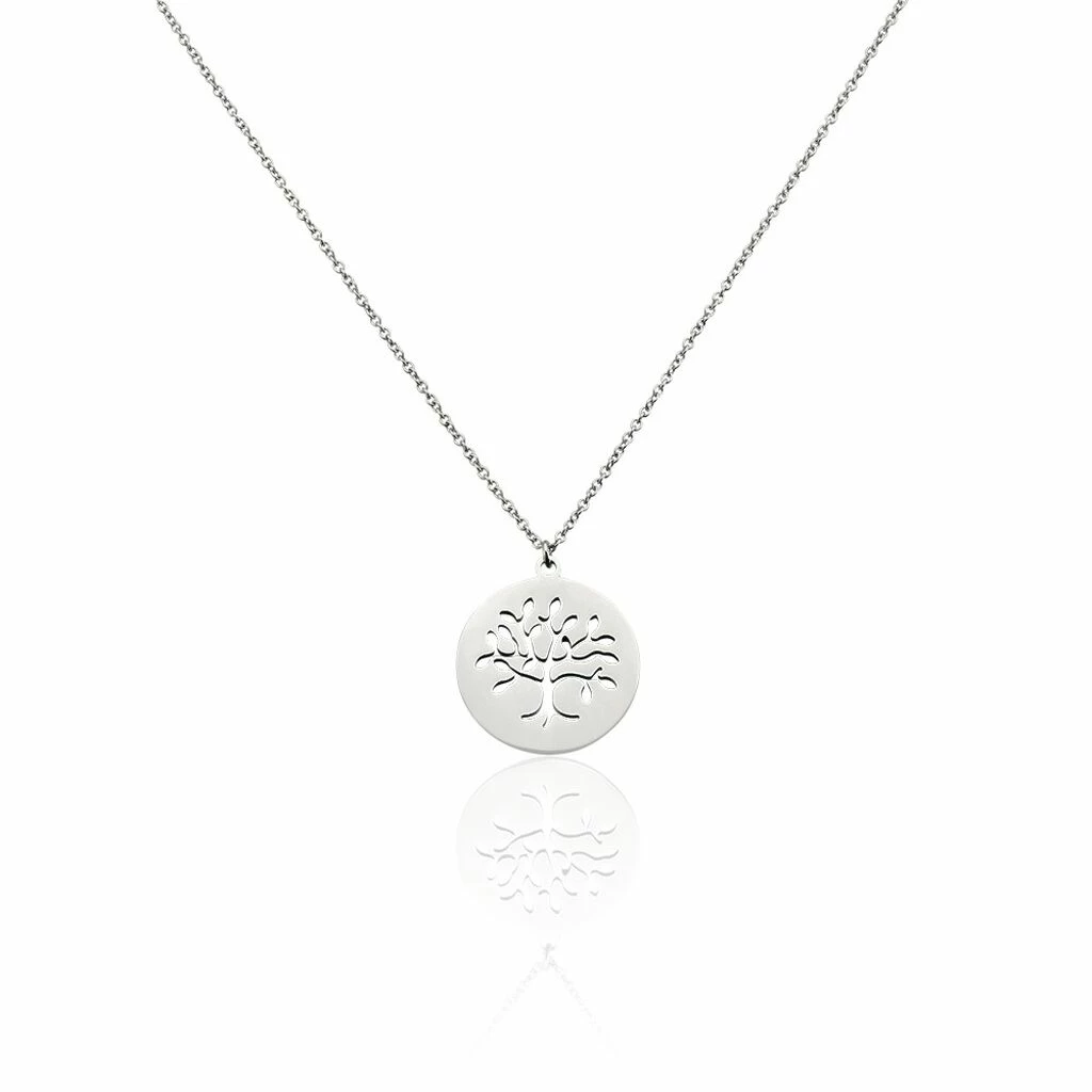 Collier Acier Blanc Pendentif Arbre De Vie Maille Forçat 70cm