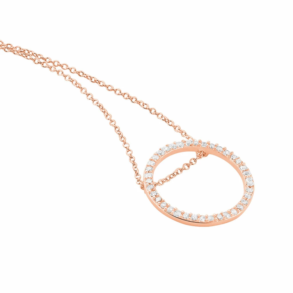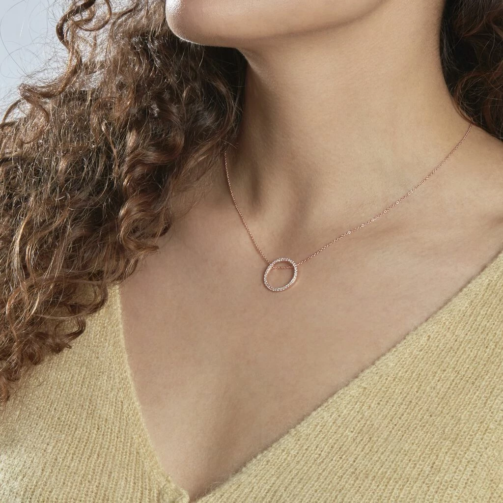 Collier Argent Rose 925/1000 Motif Cercle Ajoure Pavage Oxydes De Zirconium 45cm