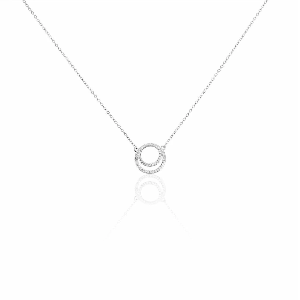 Collier Argent Blanc 925/1000 Double Cercle Oxydes De Zirconium Sertis Pavage Maille Jaseron 42cm