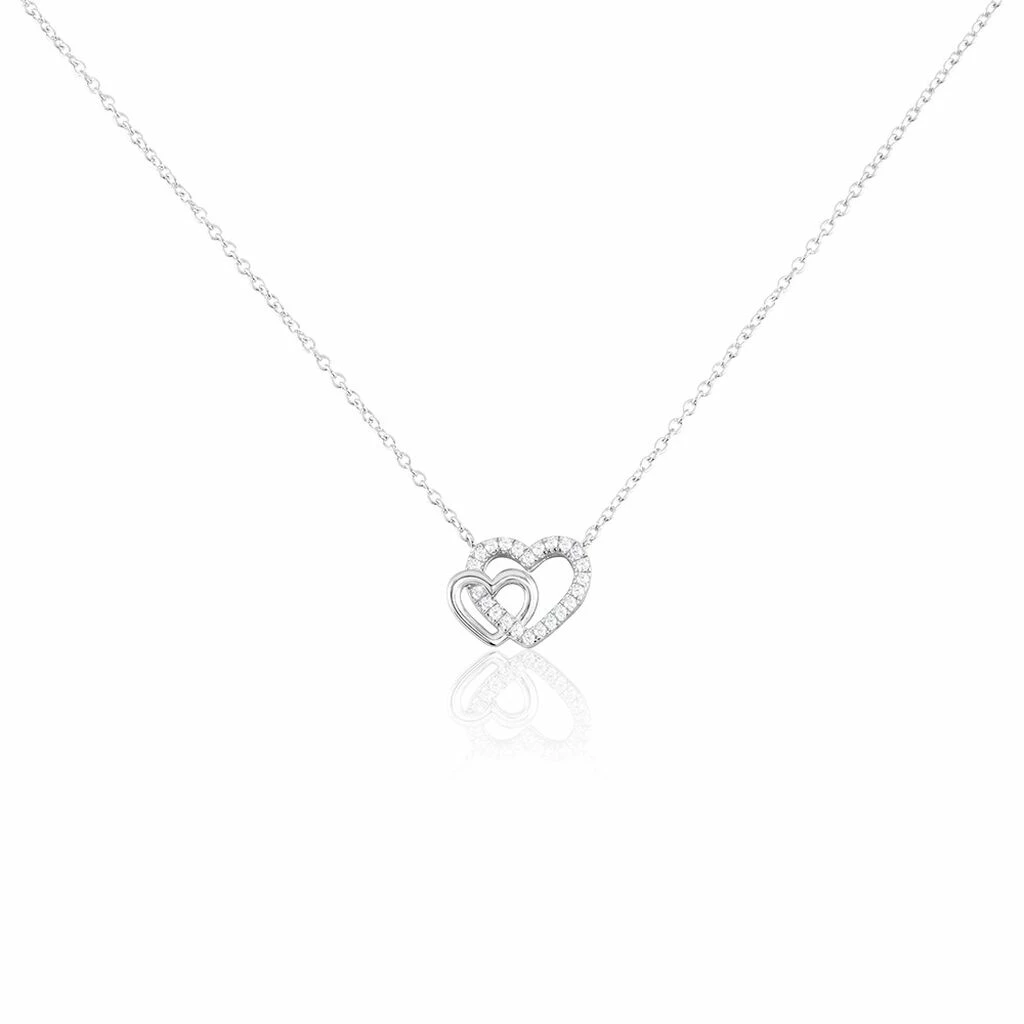 Collier Argent Blanc 925/1000 Cœur Micro Serti Oxydes De Zirconium Blancs Maille Forçat 38cm