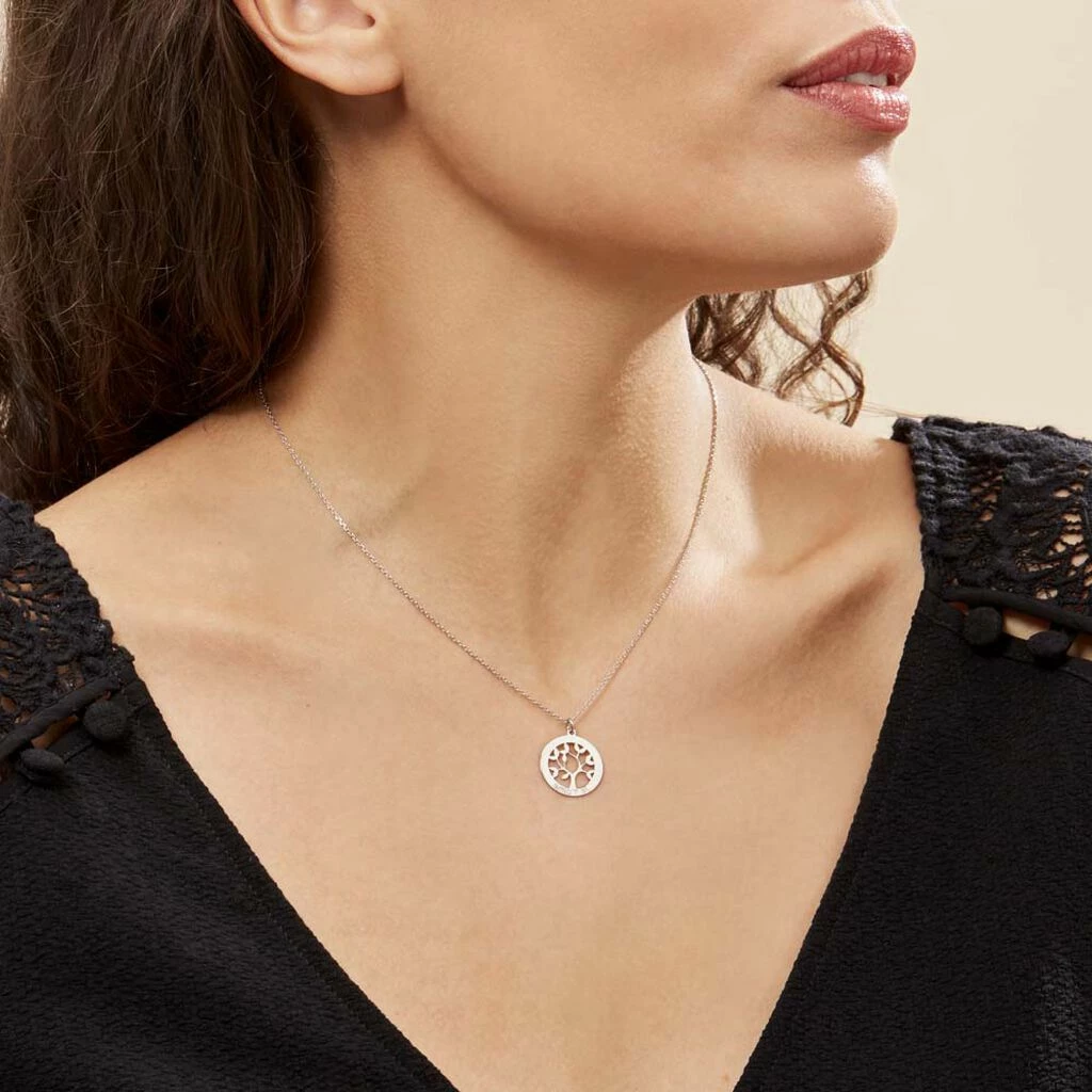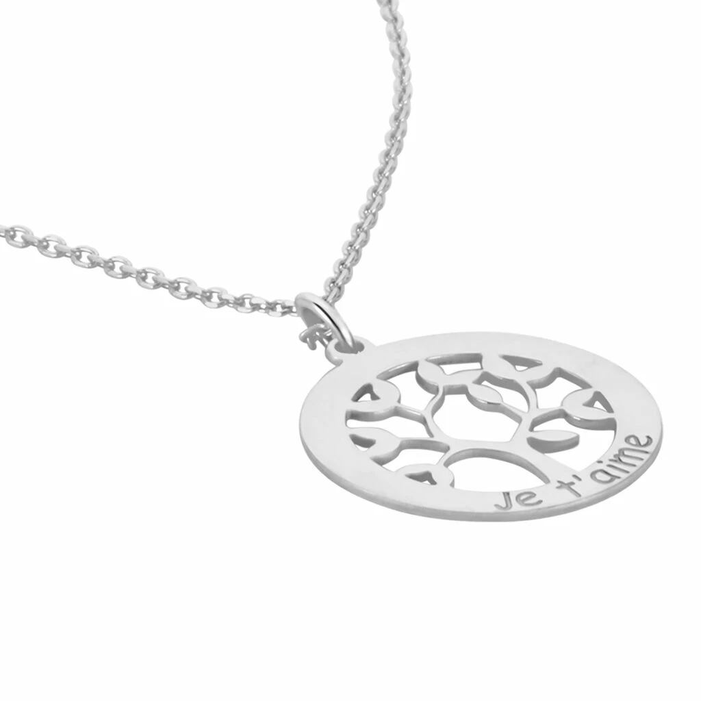 Collier Argent Blanc 925/1000 Arbre De Vie Ajoure Message Je T’aime Maille Forcat 42cm