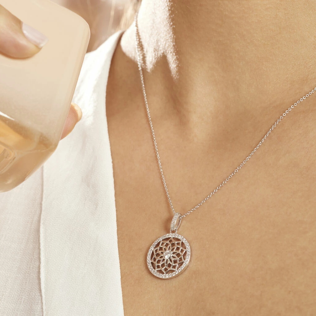 Collier Argent 925/1000 Pastille De Fleur Oxyde Et Oxyde 45cm