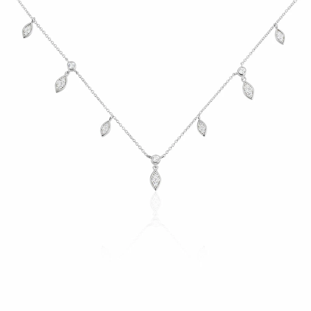 Collier Argent Blanc 925/1000 Effet Riviere Multichaines Sertis Clos Oxydes De Zirconium 45cm