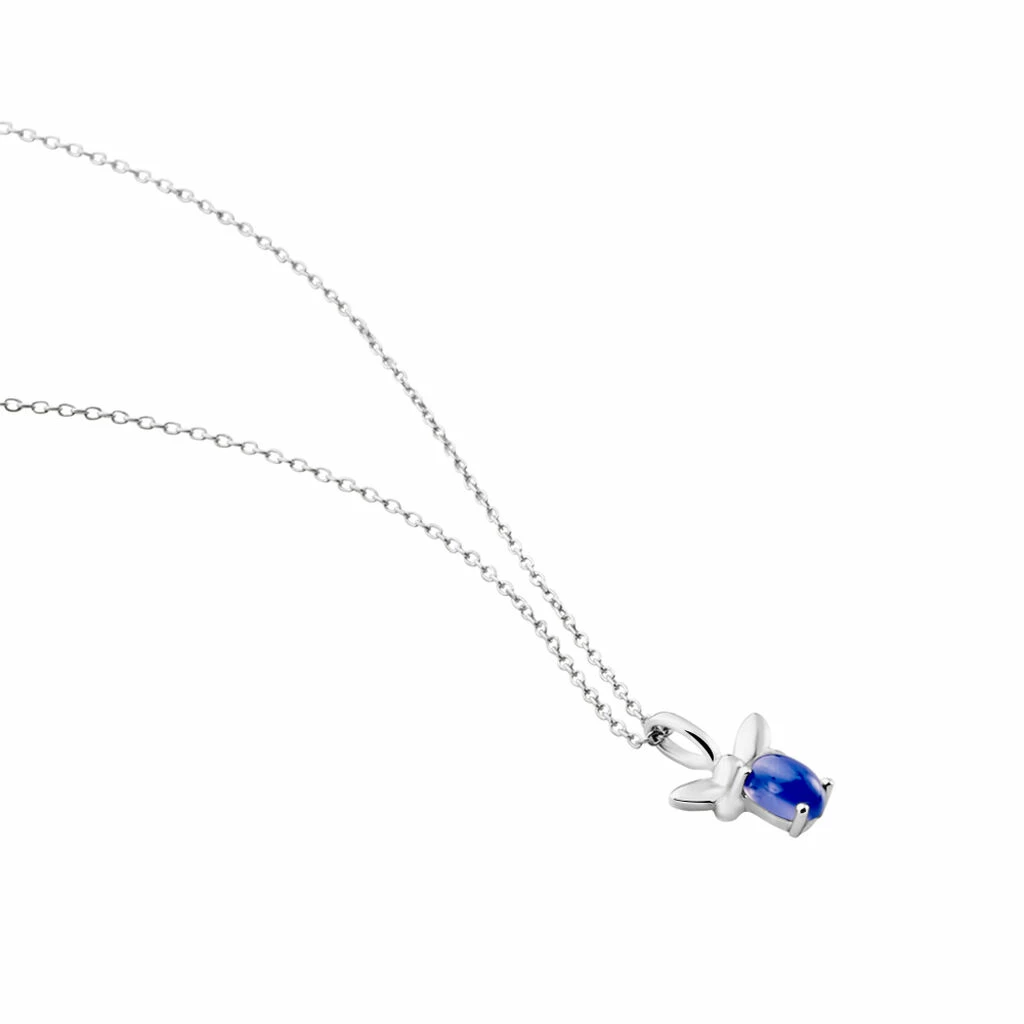 Collier Argent Blanc 925/1000 Abeille Calcedoine Bleue Maille Forcat 45cm