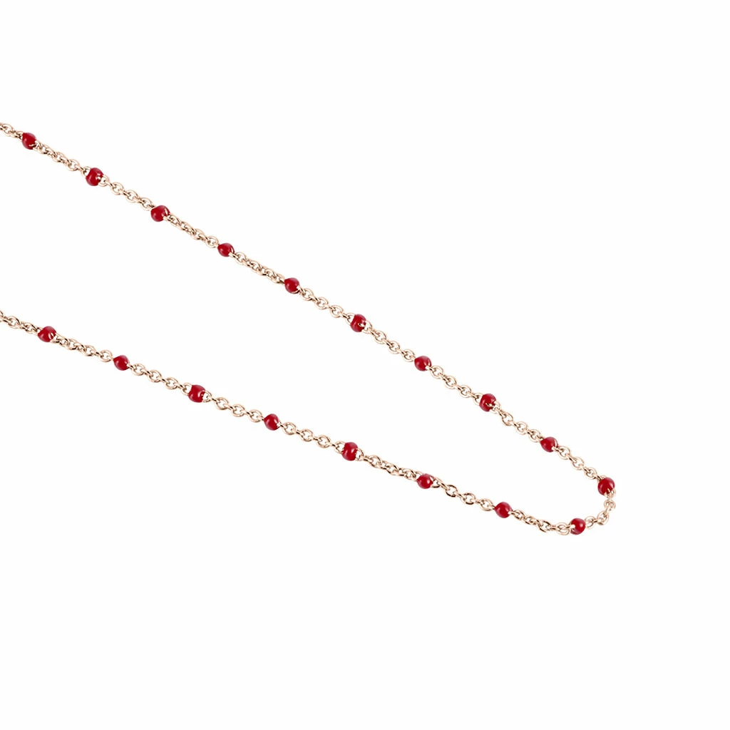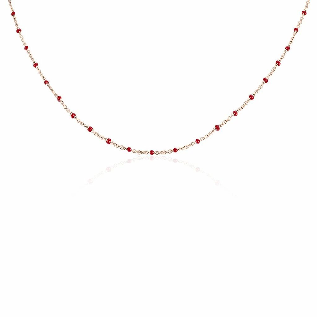 Collier Argent Rose 925/1000 Email Rouge 44cm