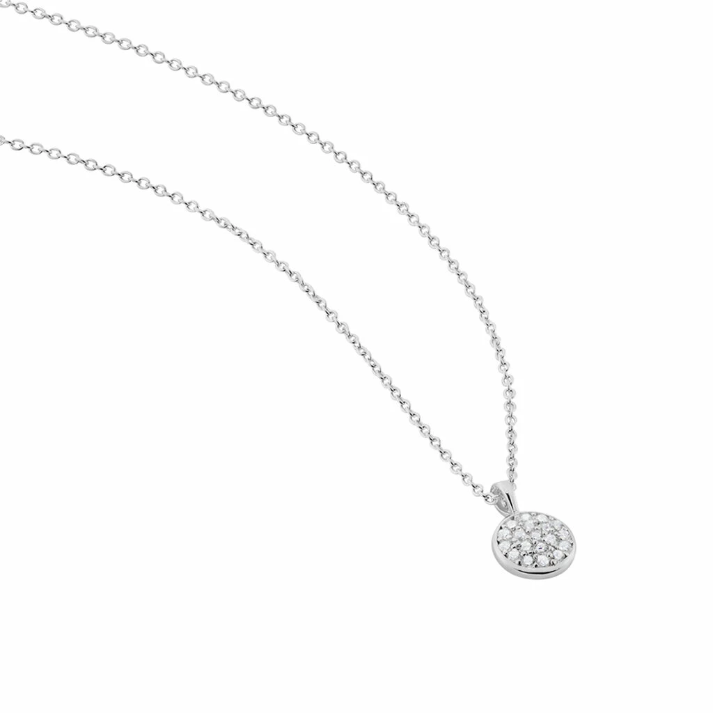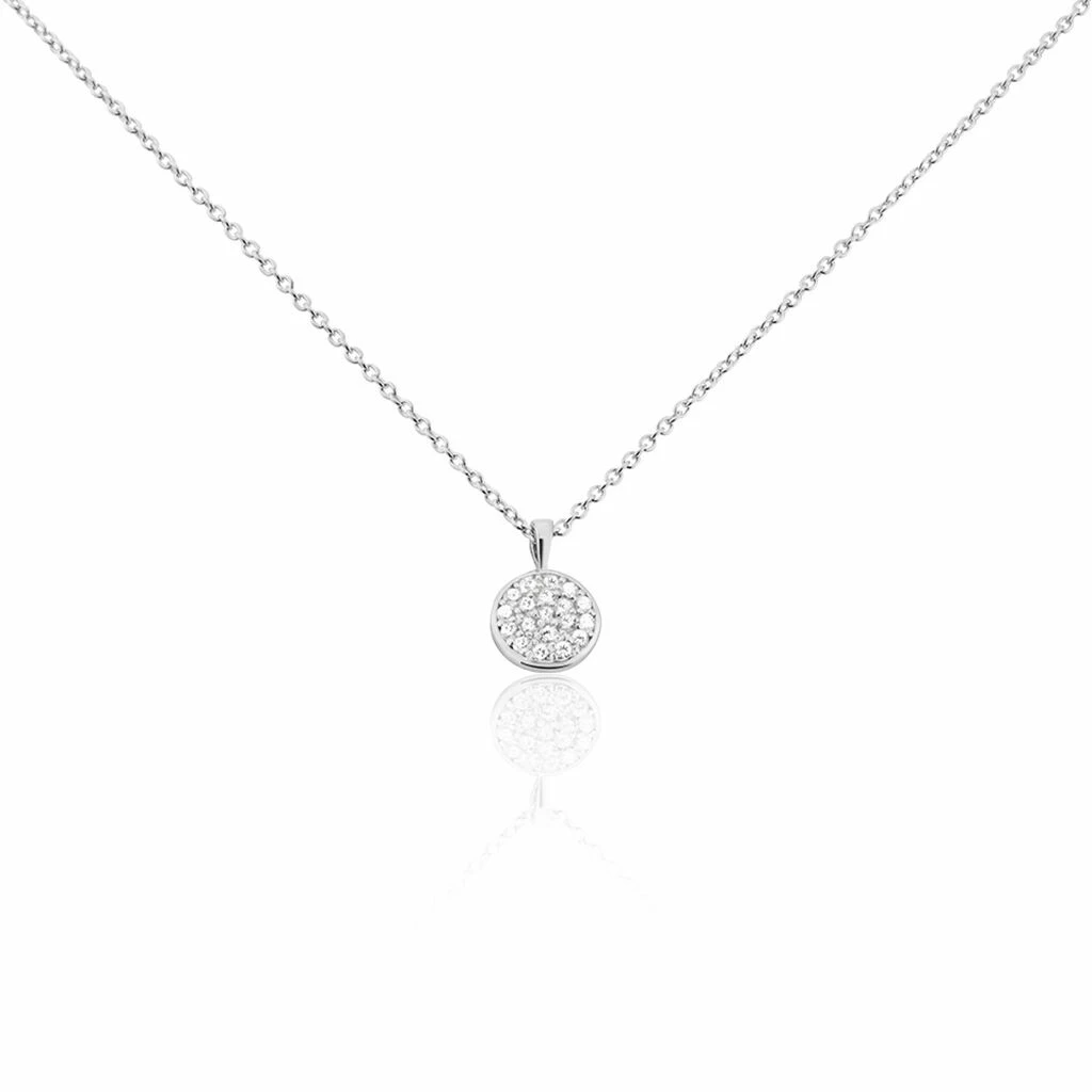 Collier Argent Blanc 925/1000 Pastille Pavage Oxydes De Zirconium Maille Forcat 45cm