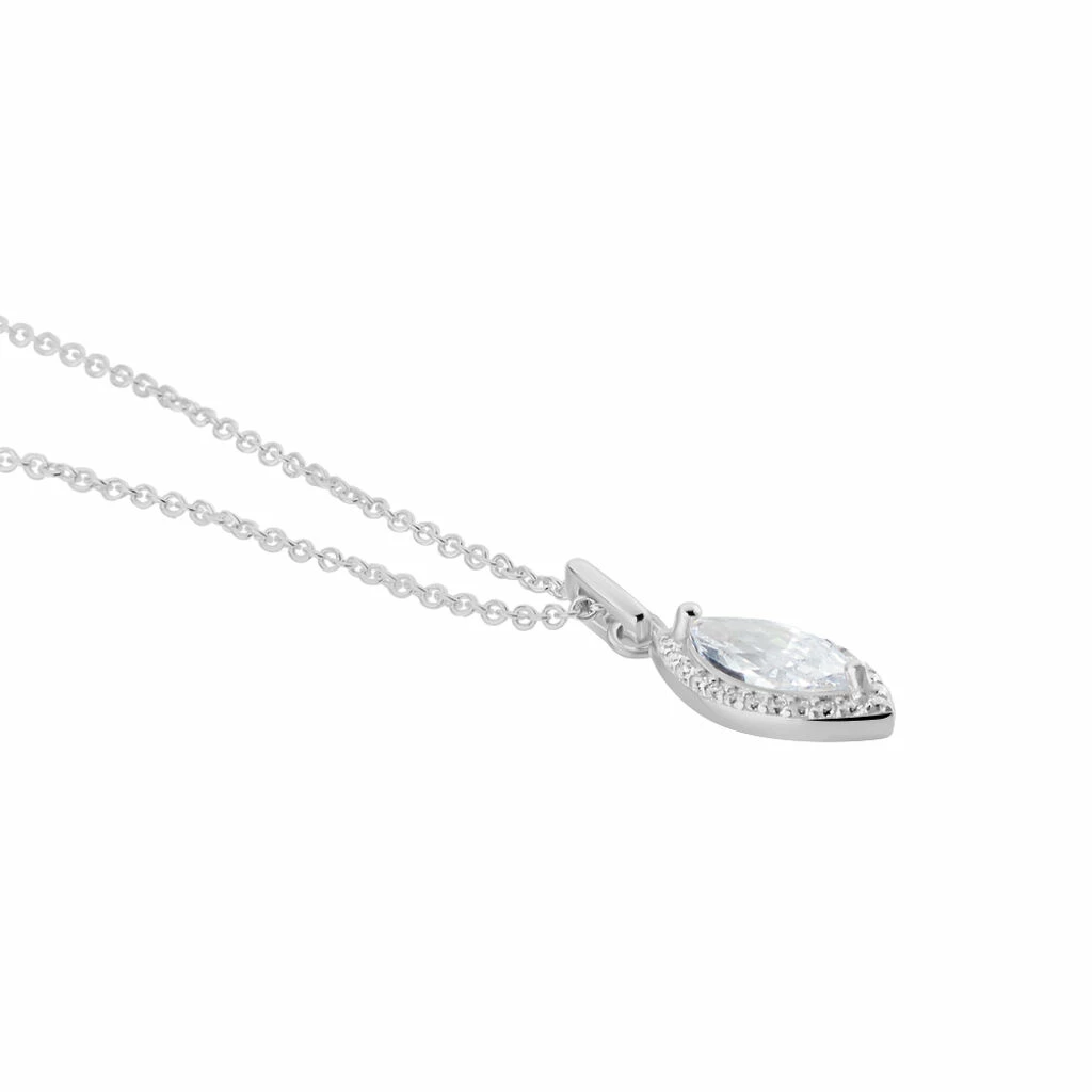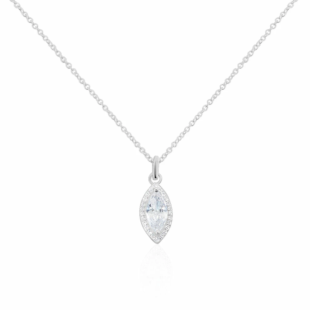 Collier Argent Blanc 925/1000 Navette Entourage Sertis Griffes Oxydes De Zirconium 45cm