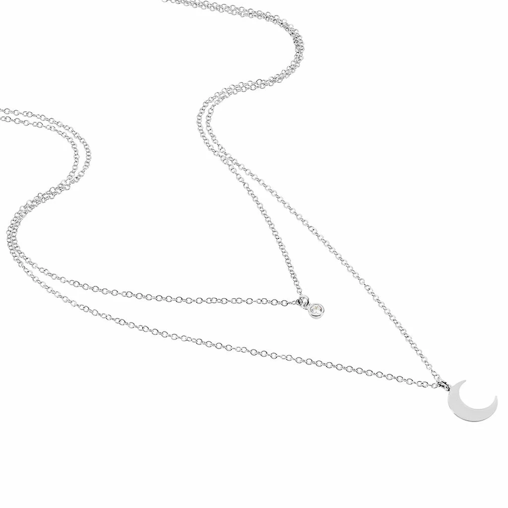 Collier Argent Blanc 925/1000 Lune Et Oxyde De Zirconium Double Mailles Forcat 41cm