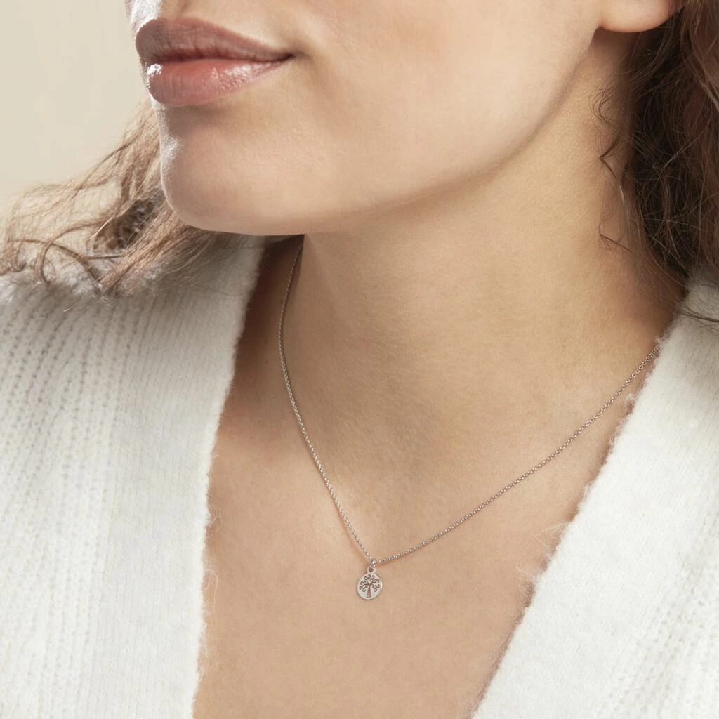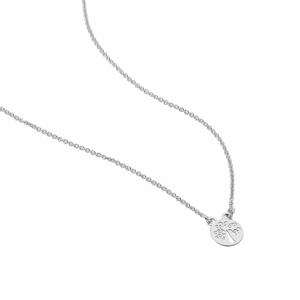 Collier Argent Blanc 925/1000 Pastille Motif Arbre De Vie Ajoure Maille Forcat 42cm