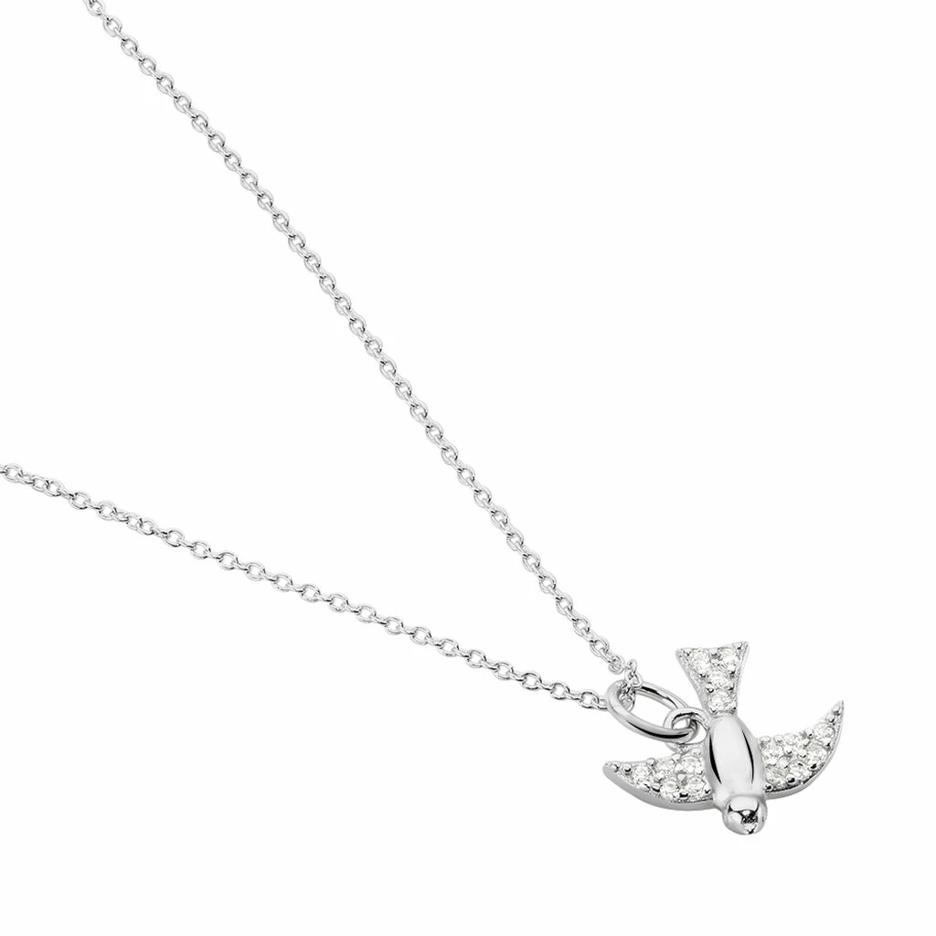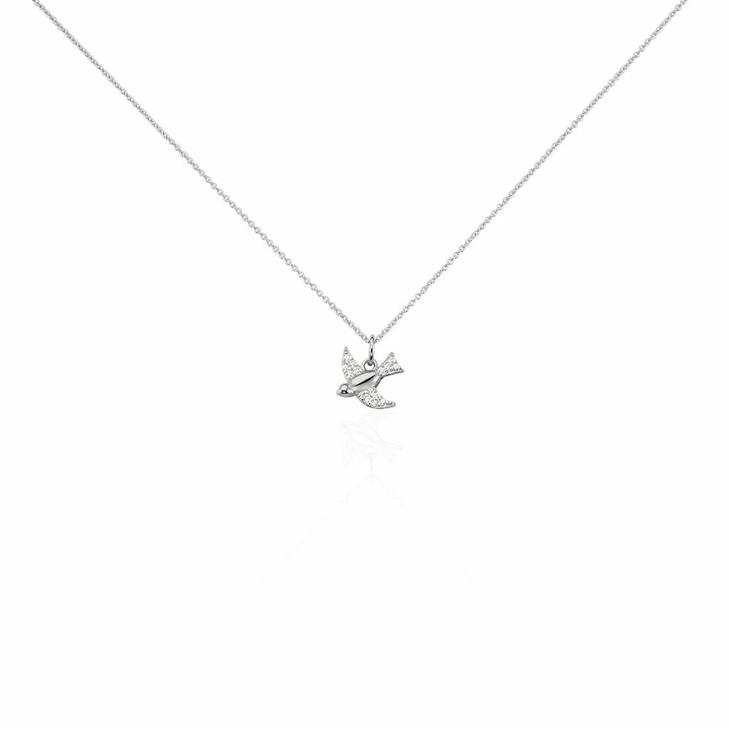 Collier Argent Blanc 925/1000 Motif Hirondelle Avec Oxydes De Zirconium 45cm