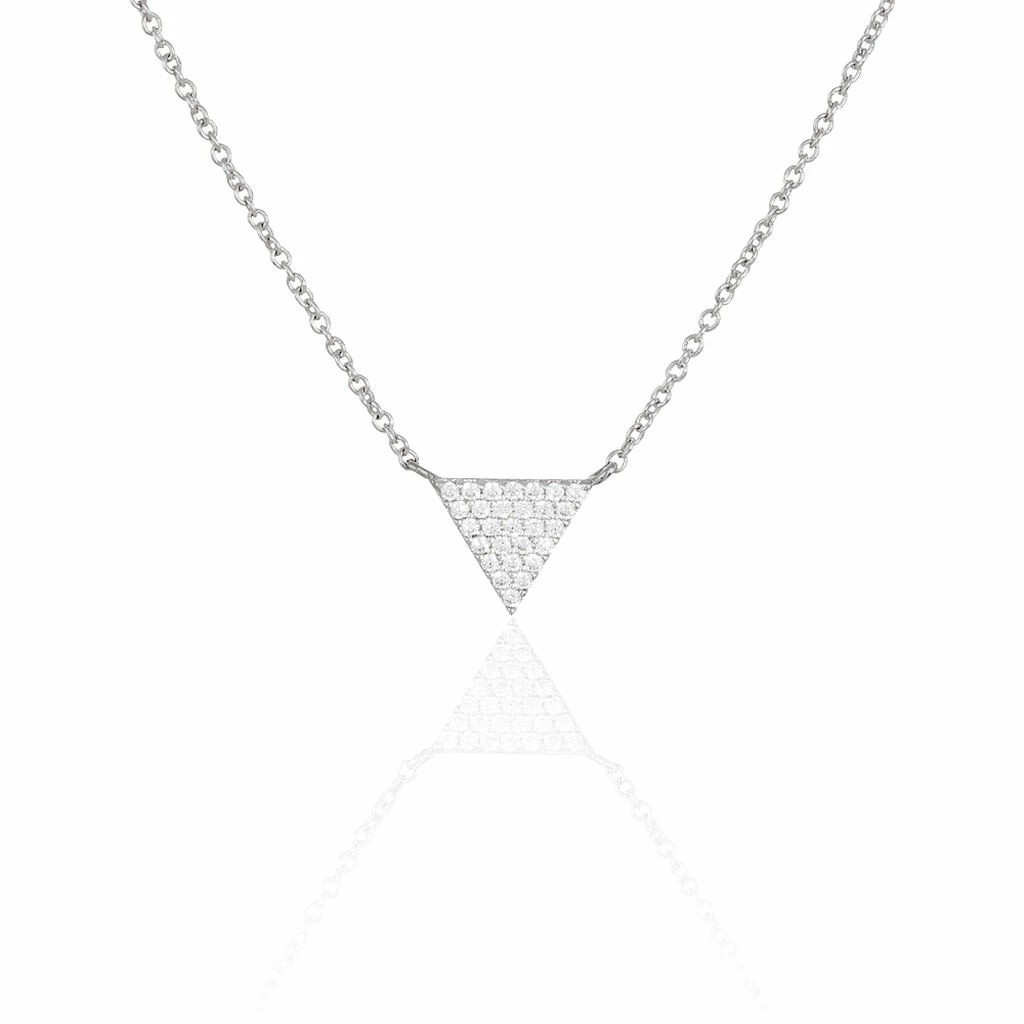 Collier Argent Blanc 925/1000 Triangle Pavage Oxydes De Zirconium 45cm