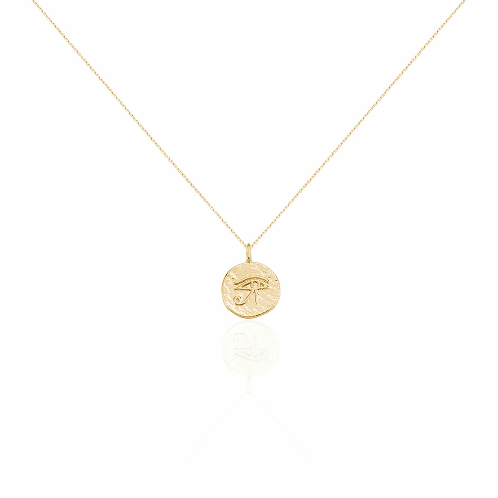 Collier Plaqué Or Jaune Forme Ronde Effet Martele Motif Oeil 44cm