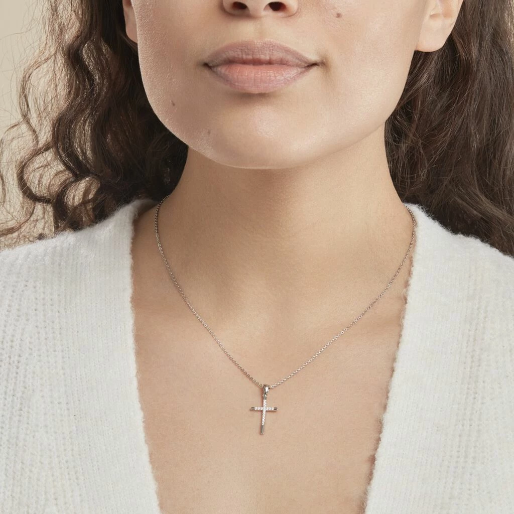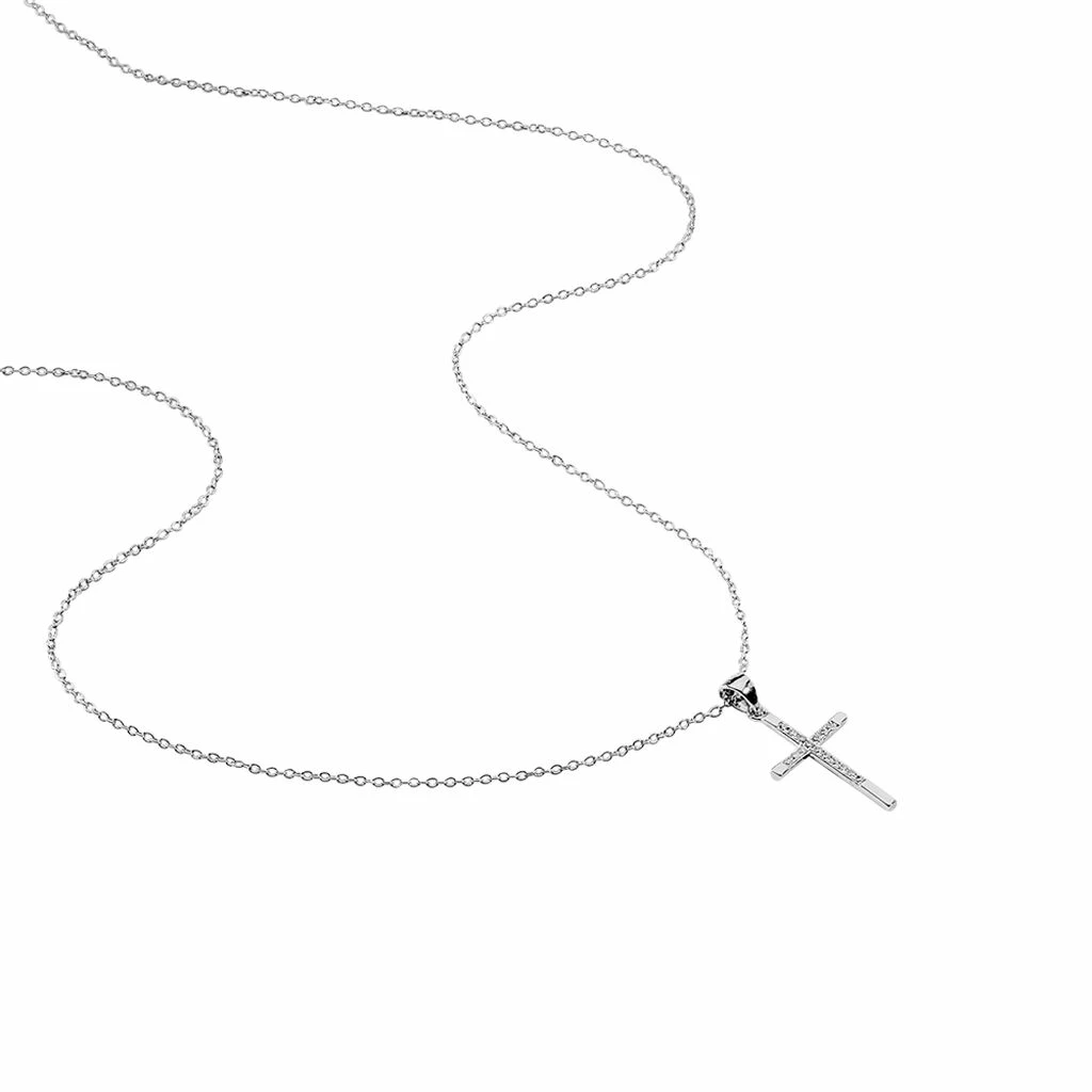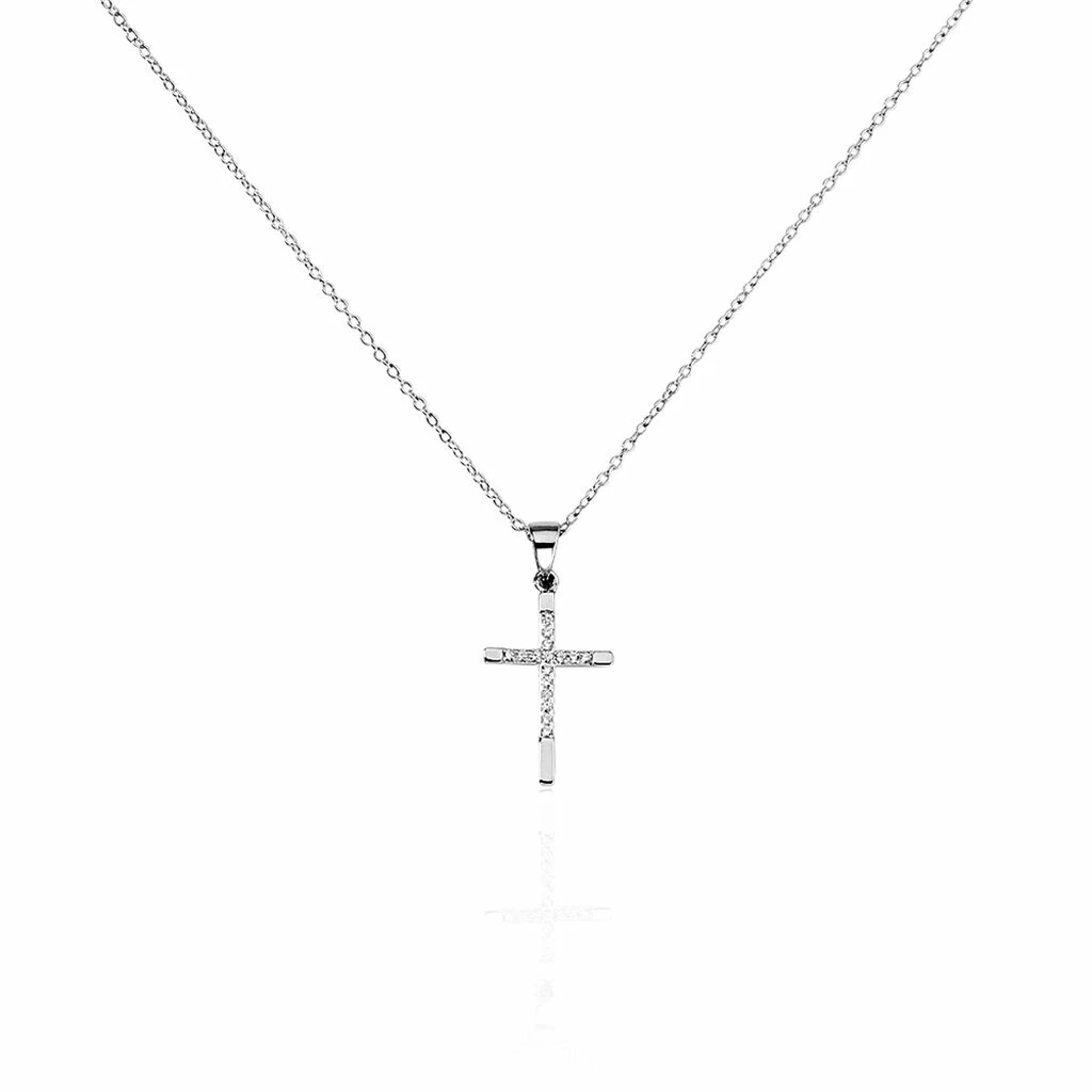 Collier Argent Blanc 925/1000 Croix Semi Pavee Oxydes De Zirconium