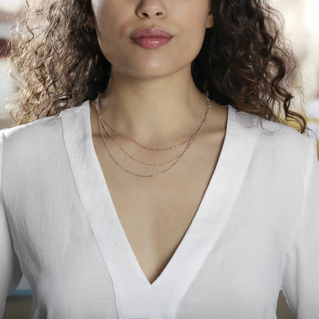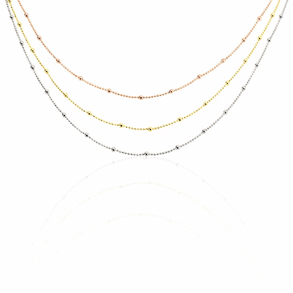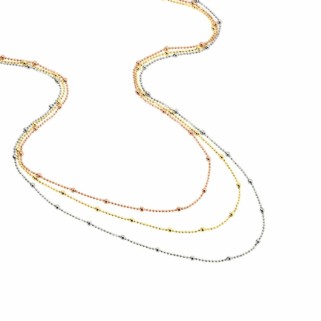 Collier Argent Tricolore 925/1000 Triple Mailles Boules 42cm