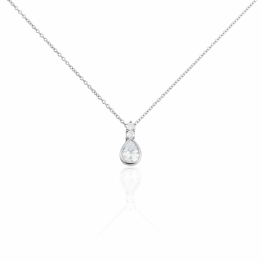 Collier Argent 925/1000 Goutte Maille Forçat Oxyde De Zirconium 44cm