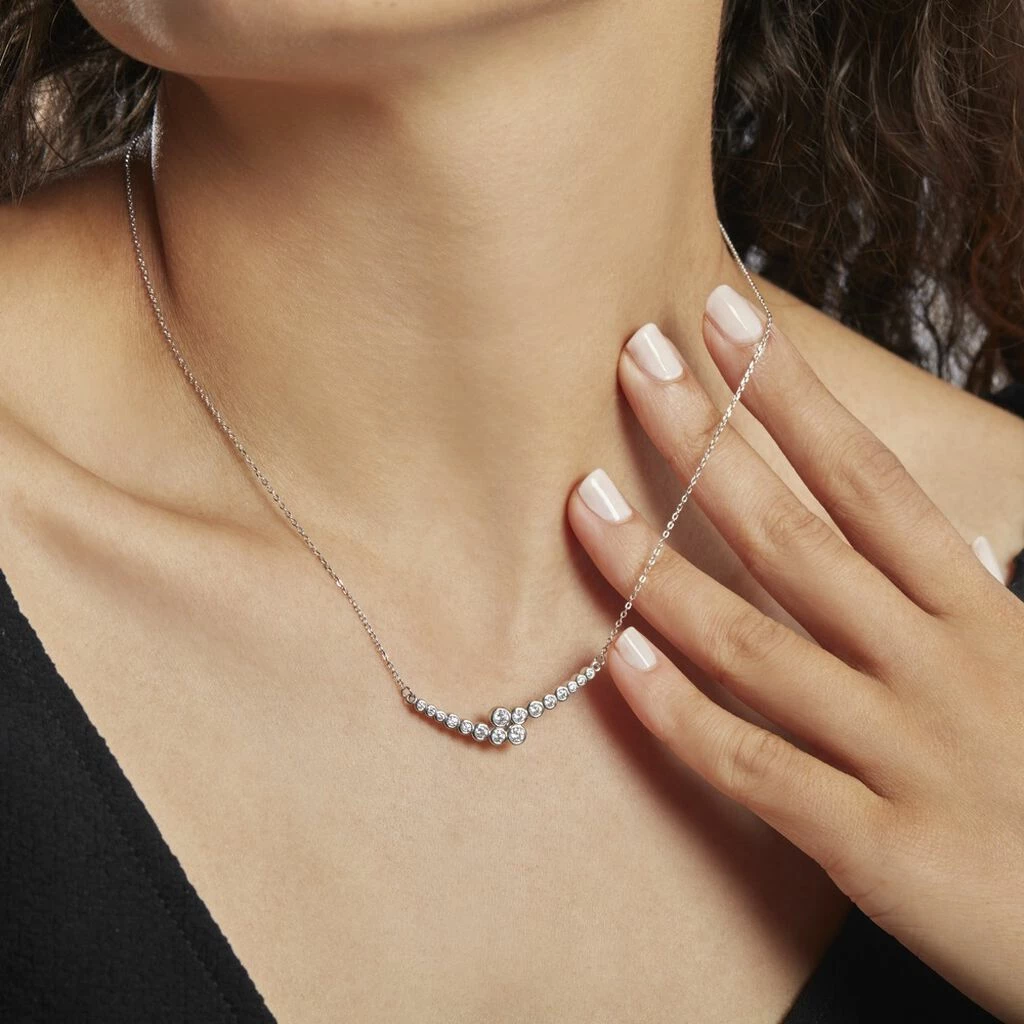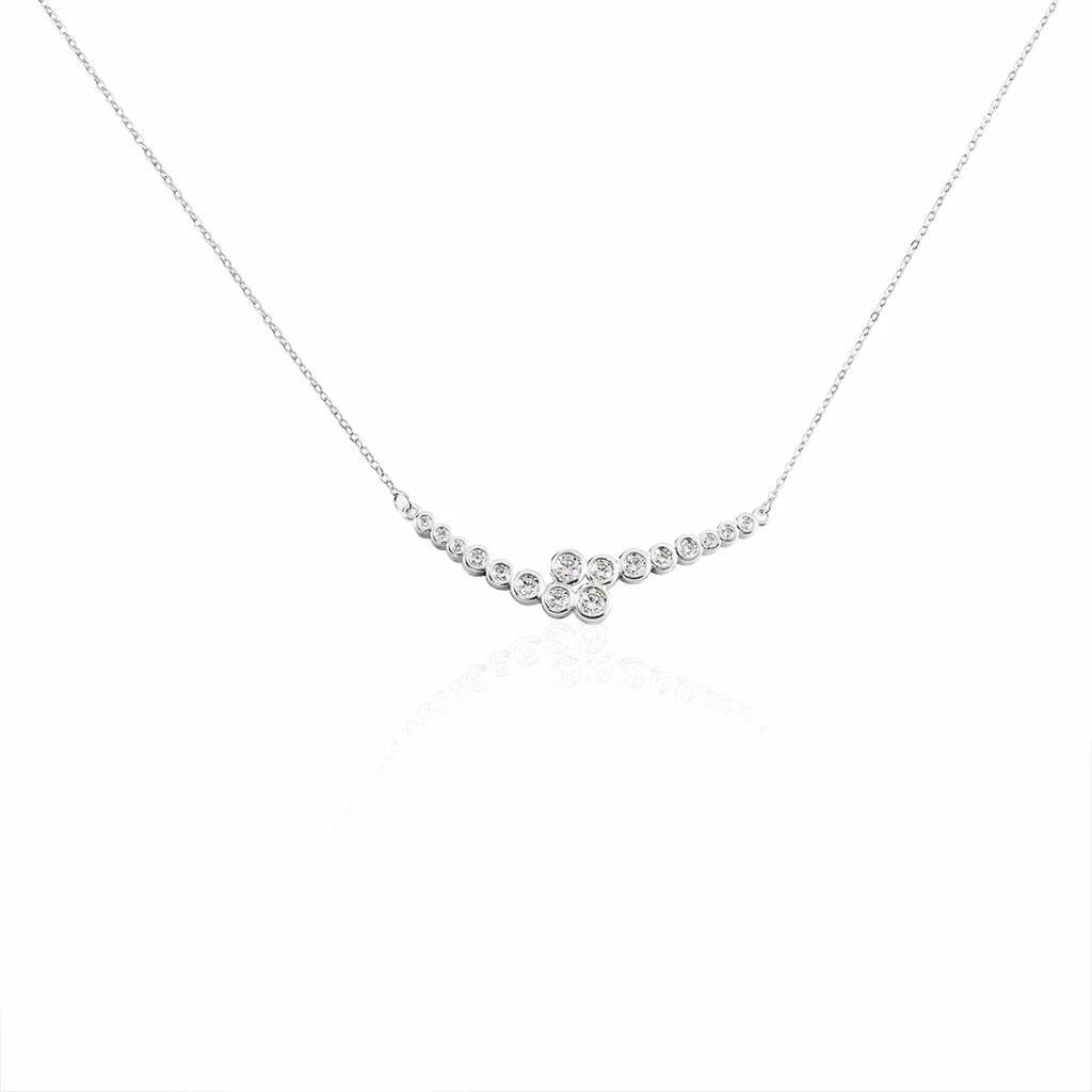 Collier Argent Blanc 925/1000 Effet Rivières Croissantes Plastron Sertis Clos Oxydes De Zirconium Maille Forçat 45cm