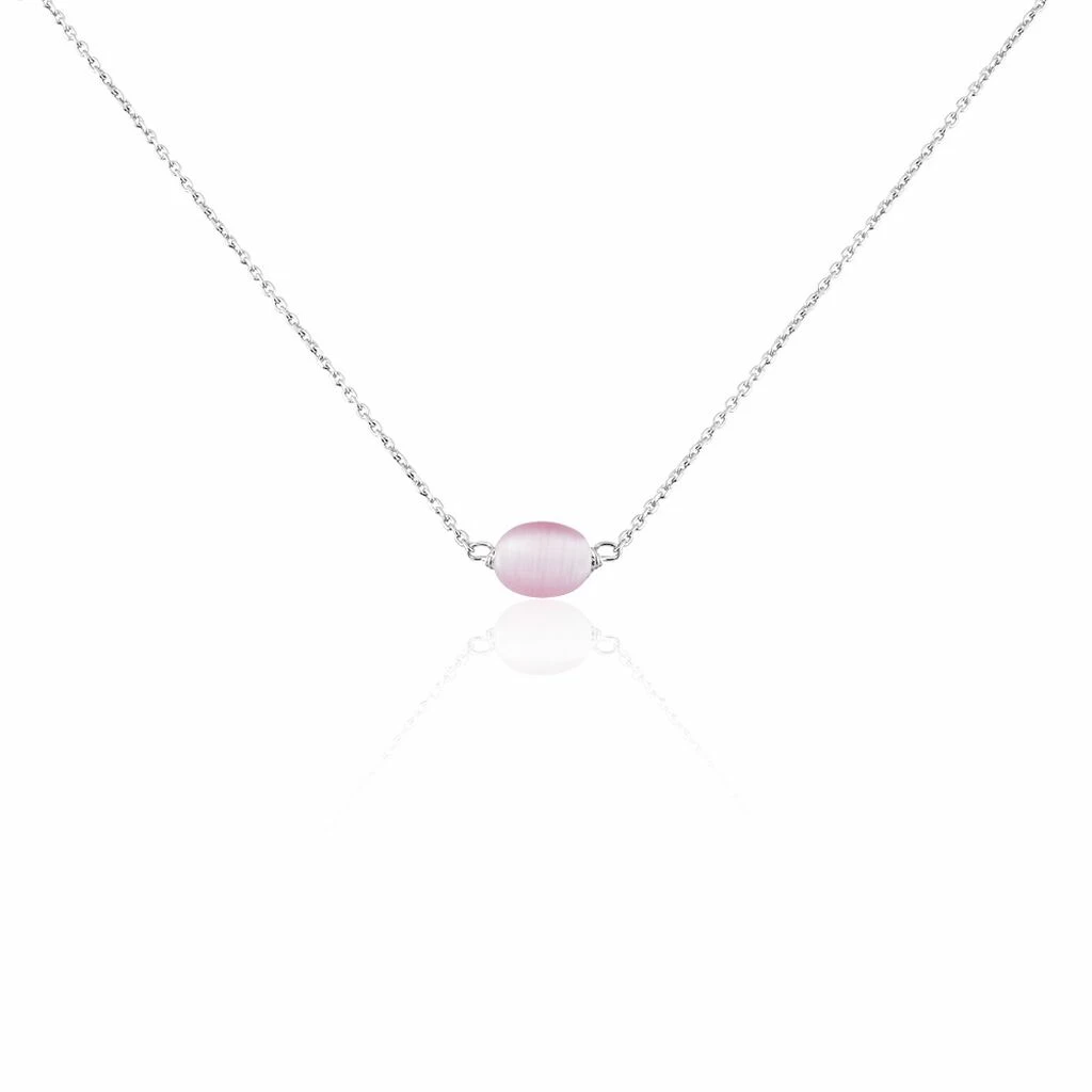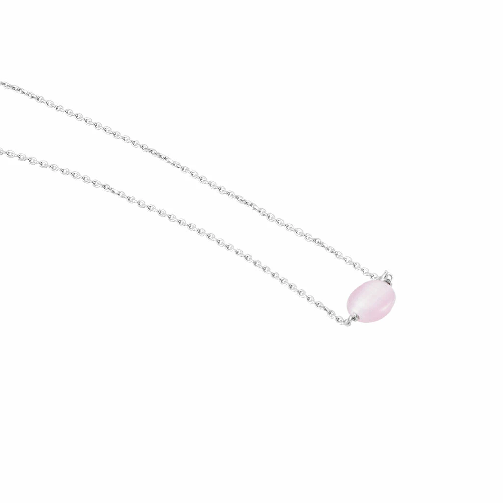 Collier Argent Blanc 925/1000 Maille Forcat Quartz Rose 38cm