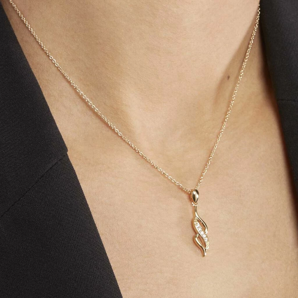 Élégant et original à la fois, ce collier en or jaune 375/1000ème ne passera pas inaperçu. Il met en valeur votre décolleté et apporte une touche d’éclat à votre tenue. Sa chaine maille forçat mesure 44 cm de longueur, et supporte un pendentif design serti d’oxydes de zirconium blancs.