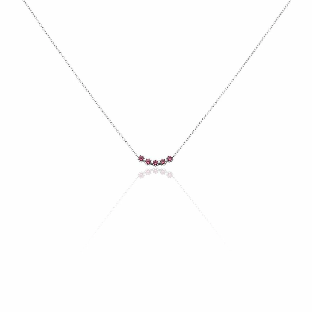 Collier Argent 925/1000 5 Oxydes De Zirconium Rouges Serti Griffes Effet Perlé Maille Forçat 45cm