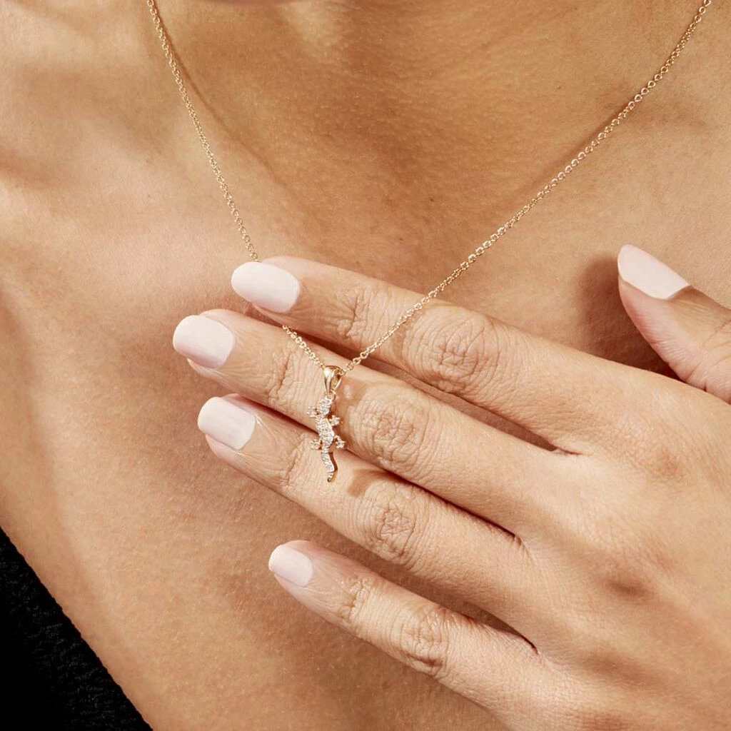 Collier Plaqué Or Jaune Salamandre Pavage Oxydes De Zirconium Maille Forcat 40+4cm