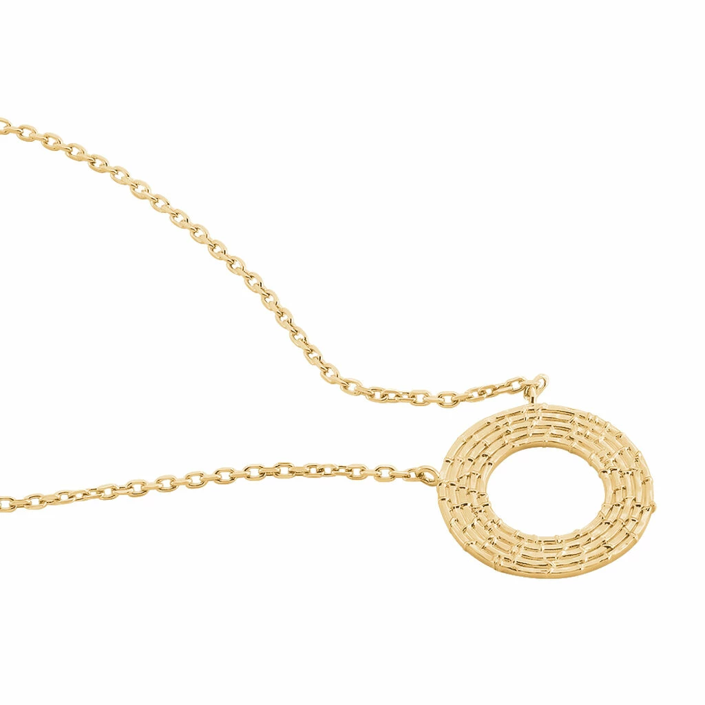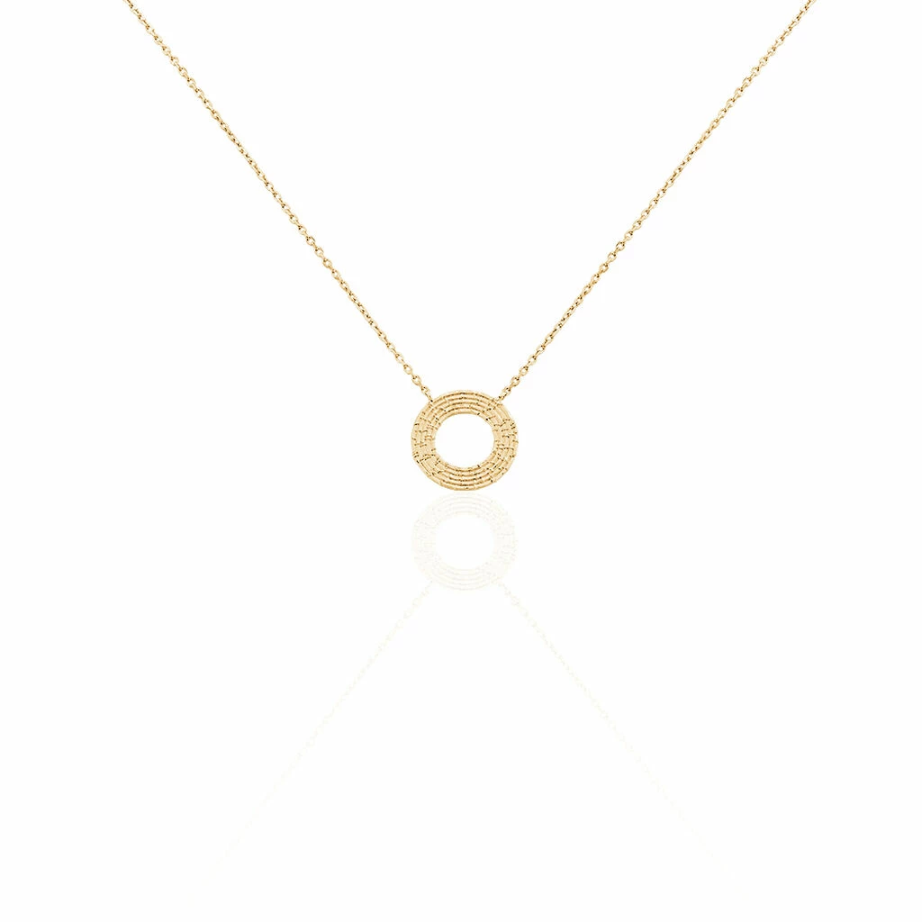 Collier Plaqué Or Jaune Cercle Ajoure Effet Strie 45cm