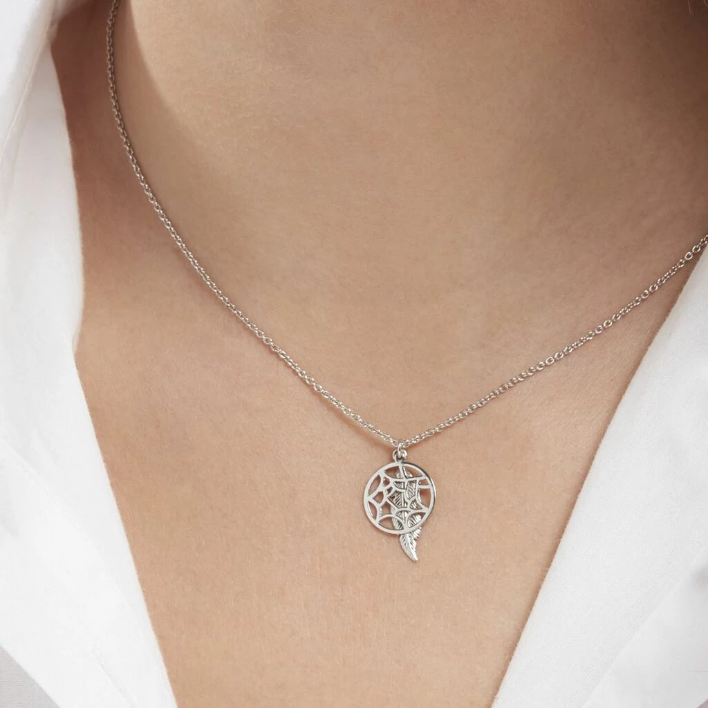 Collier Argent 925/1000 Rosace Pampille Plume Maille Forçat 45cm