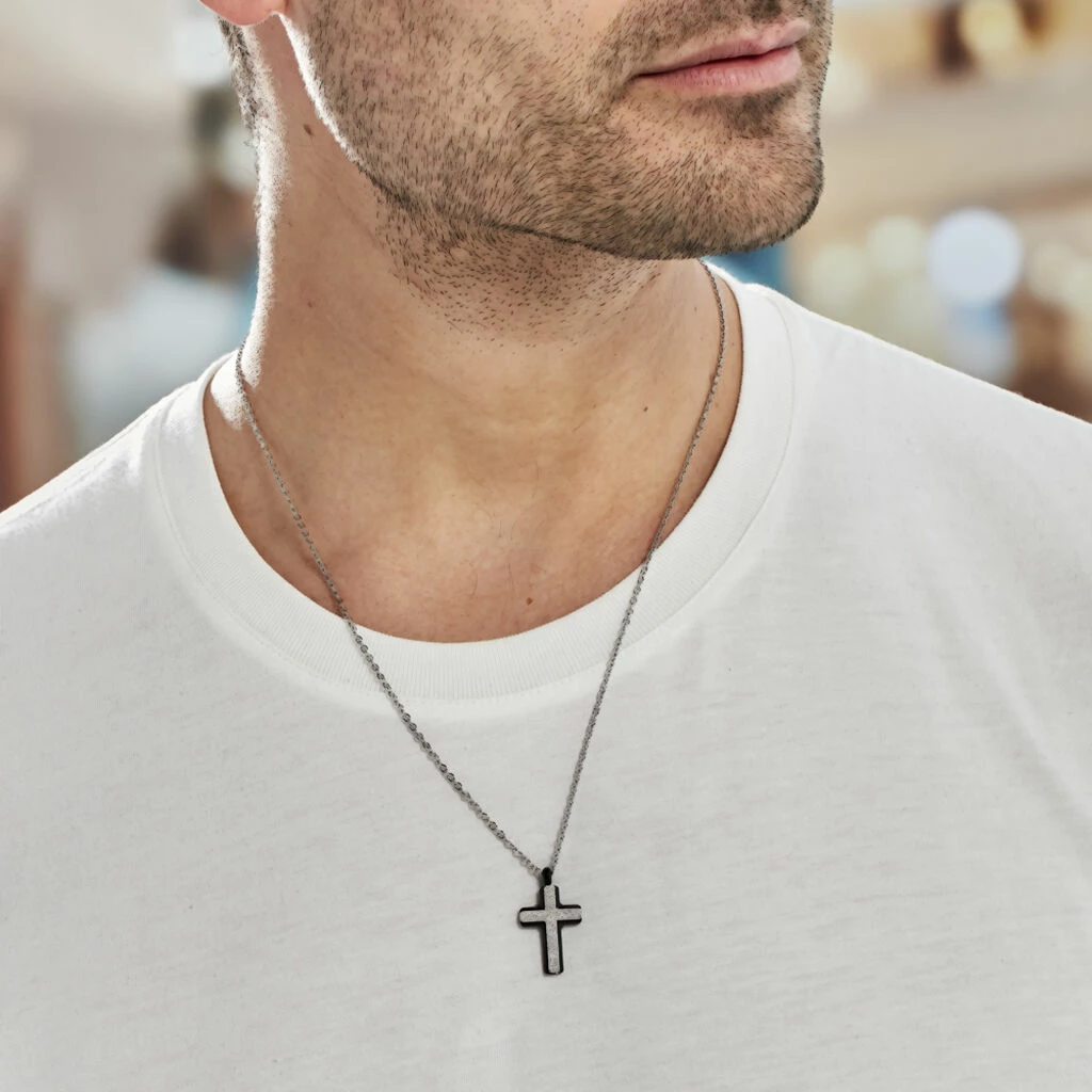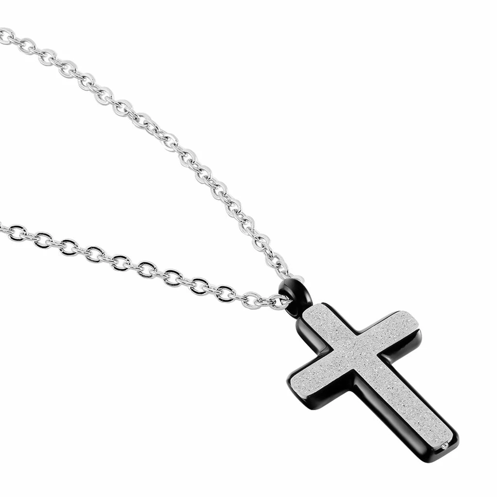 Collier Acier Blanc Forme Croix Dominante Grise 50cm