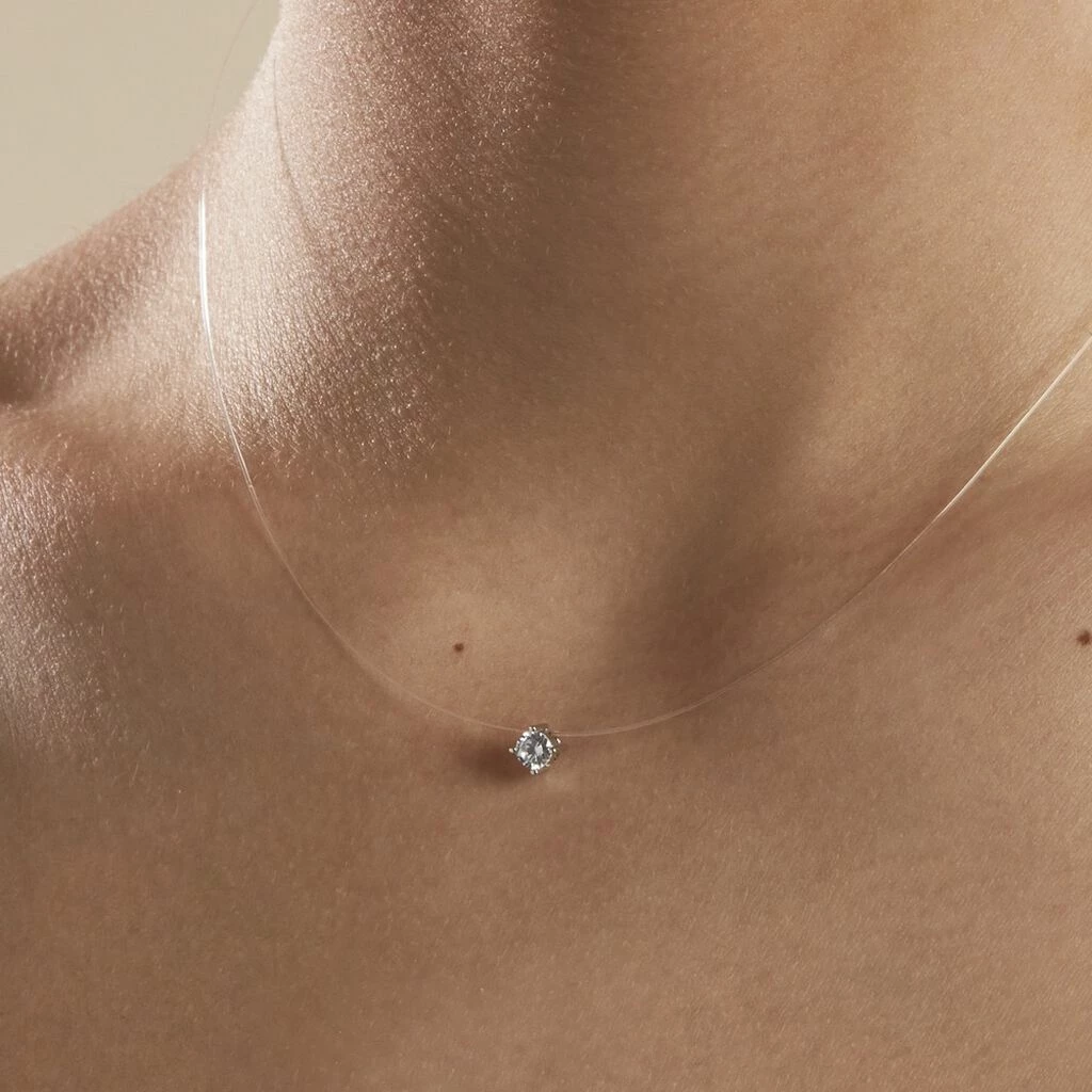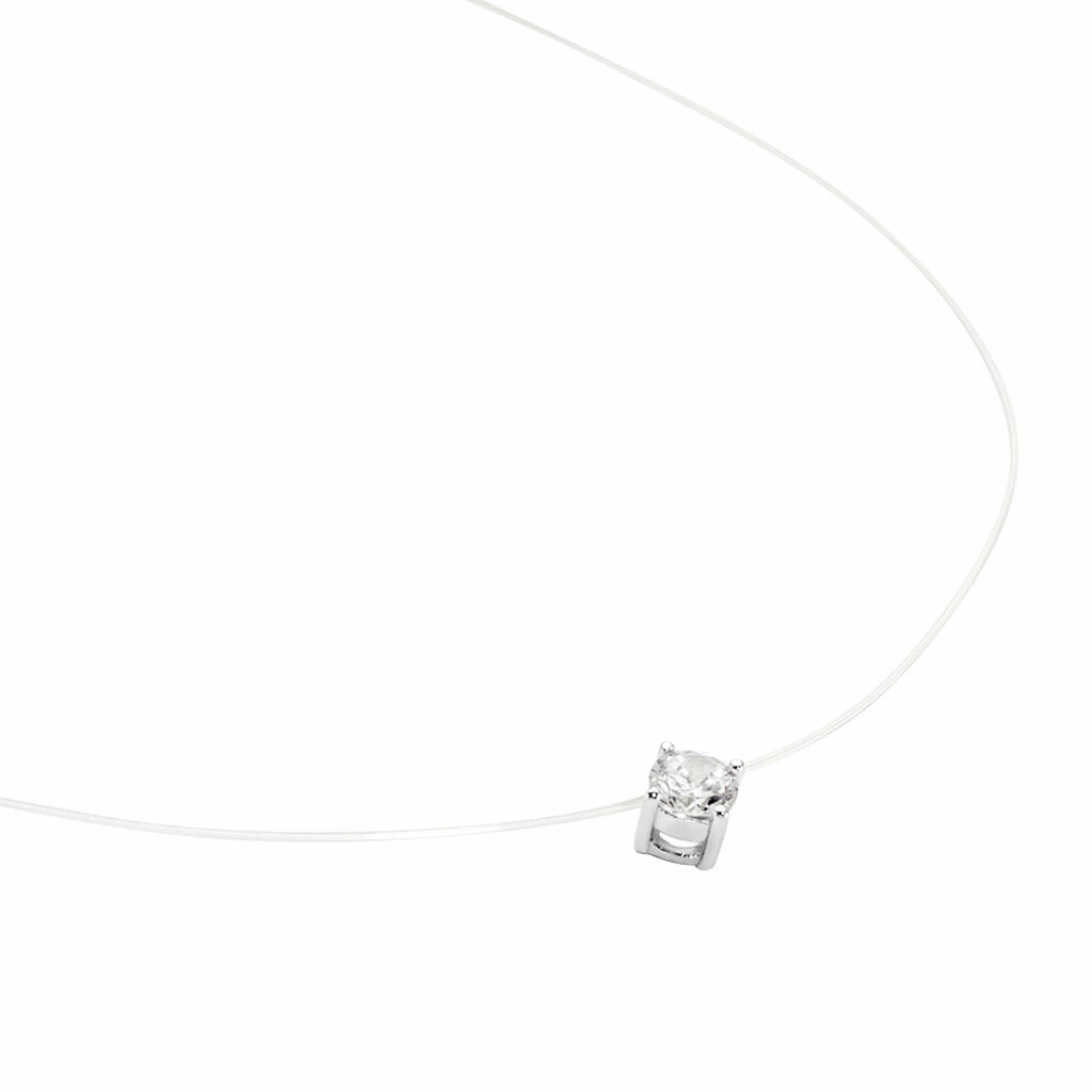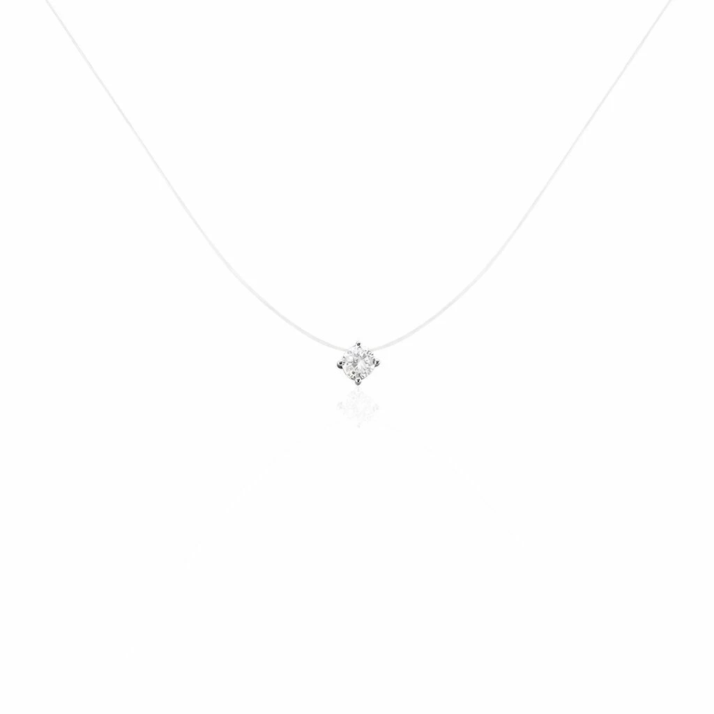 Collier Argent Blanc 925/1000 Oxyde De Zirconium Rond Serti Griffes 4mm 42cm