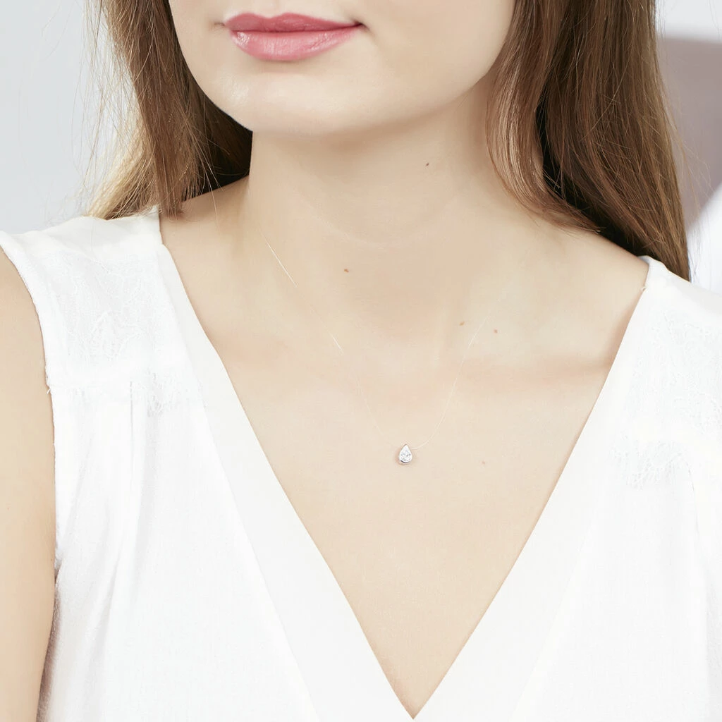 Ce collier habille votre décolleté avec élégance et délicatesse. Il est caractérisé par un fil de nylon transparent qui met en valeur son ravissant pendentif goutte en argent 925/1000ème. Ce dernier est serti d’un oxyde de zirconium blanc pour apporter un subtil éclat à votre look.