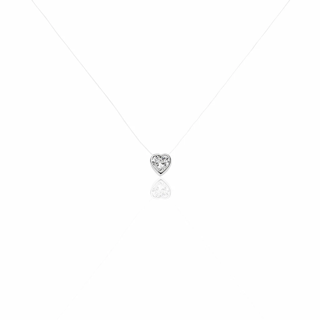 Collier Argent 925/1000 Fil De Nylon Cœur Clos Et Oxyde 42cm