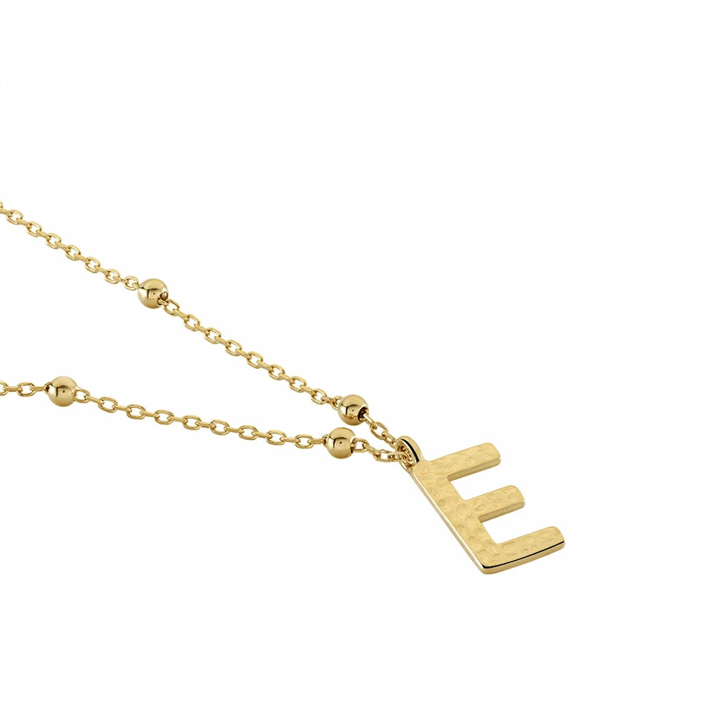 Collier Plaque Or Jaune Lettre E Martelee Et Petites Boules Chaine Maille Forcat Longueur 45cm