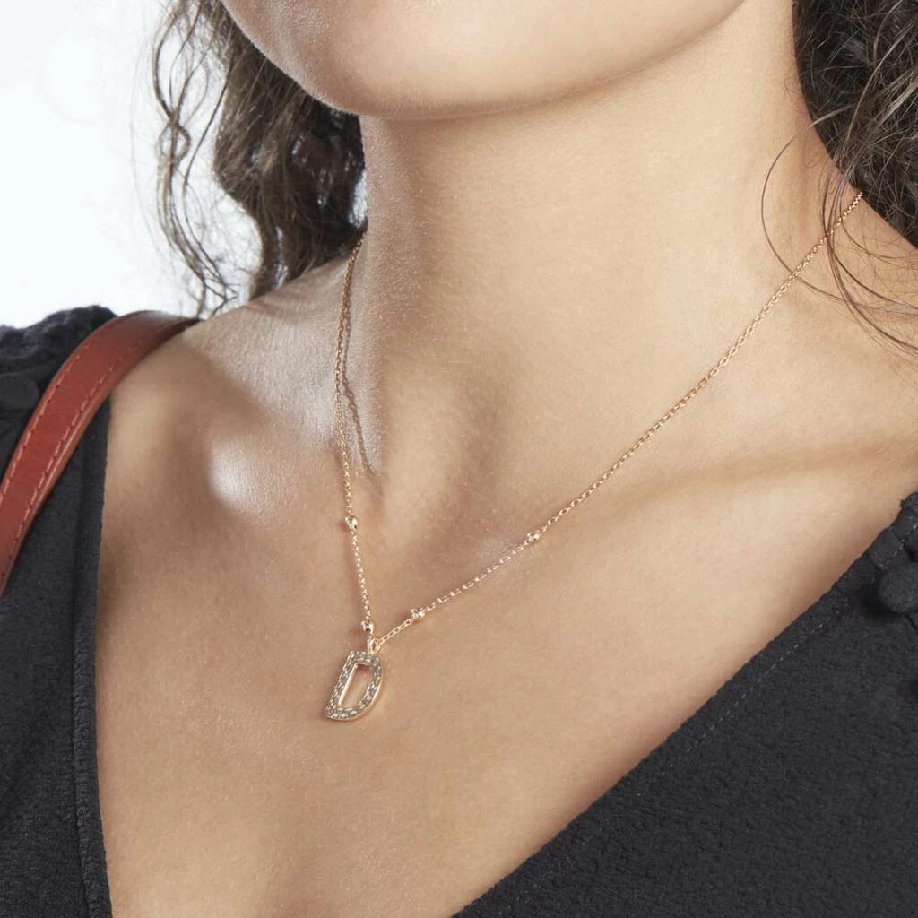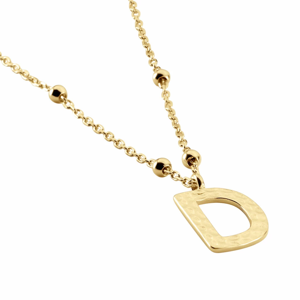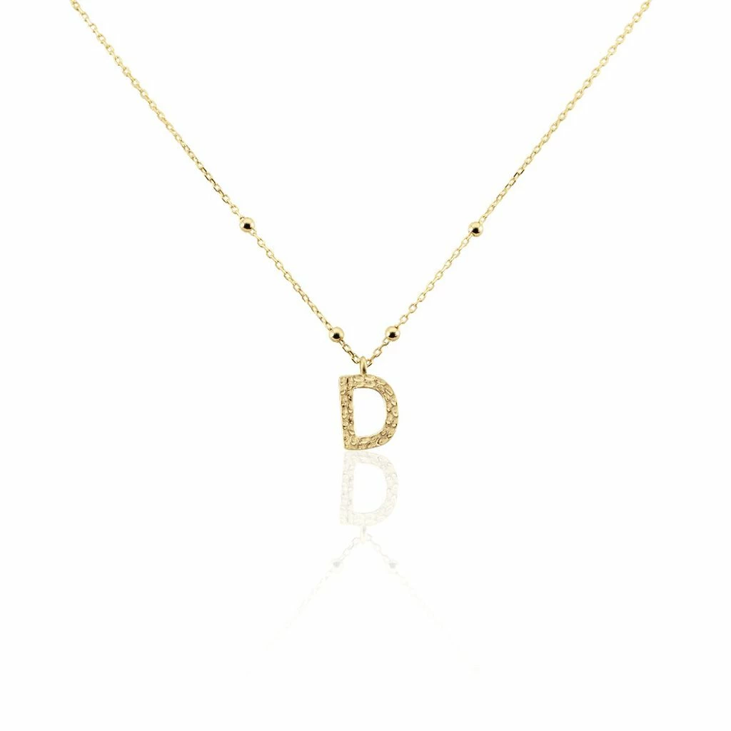 Collier Plaque Or Jaune Lettre D Martelee Et Petites Boules Chaine Maille Forcat Longueur 45cm
