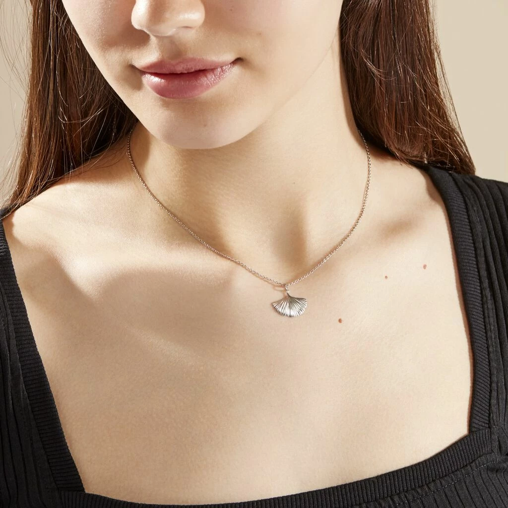 Collier Argent Blanc 925/1000 Gingko Biloba Maille Forcat 42cm