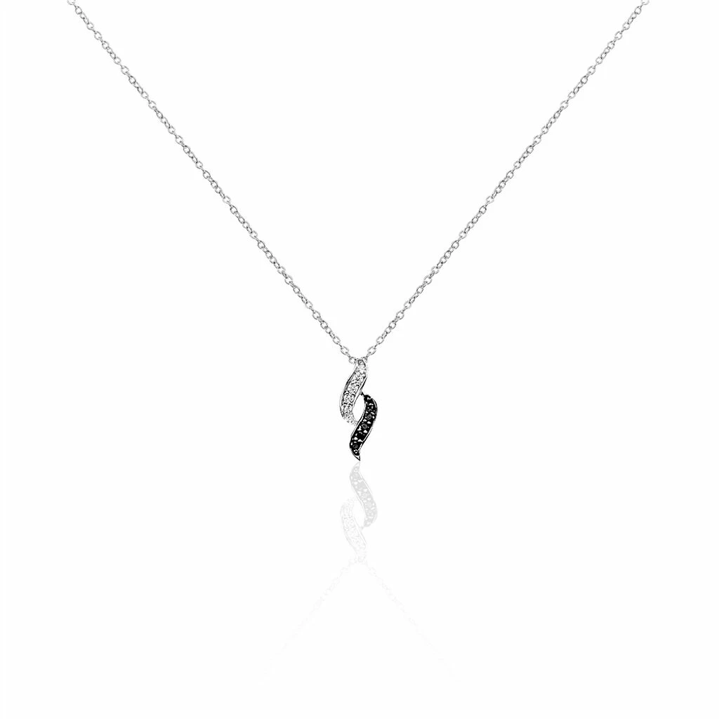 Collier Argent Blanc 925/1000 Vagues Oxydes De Zirconium Noirs Et Blancs