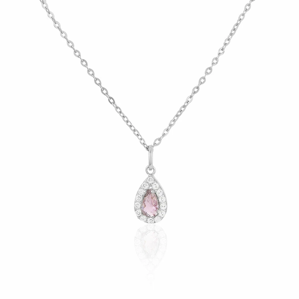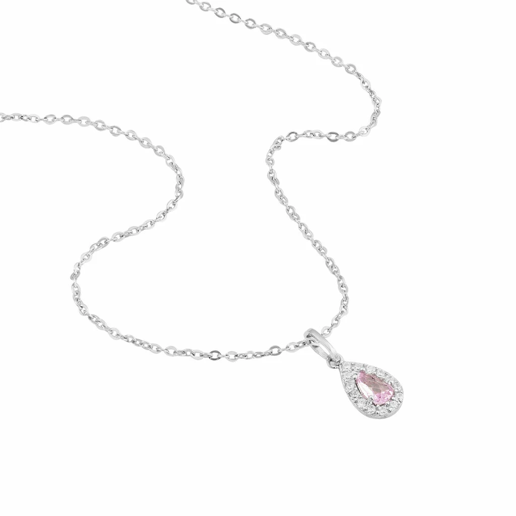 Collier Argent 925/1000 Pierre Rose Poire Entourage Oxyde 42cm