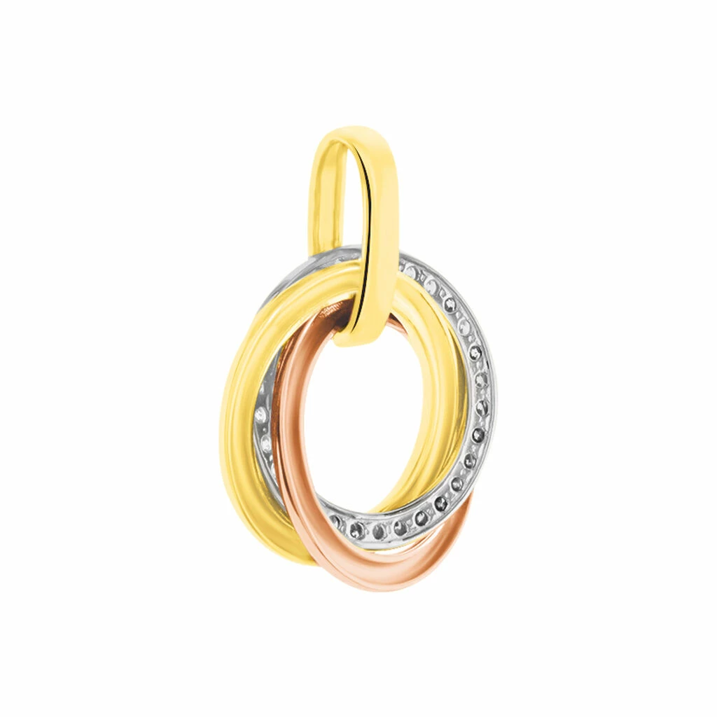 Pendentif Or Tricolore 375/1000 Cercles Et Micro Pavage Oxydes De Zirconium