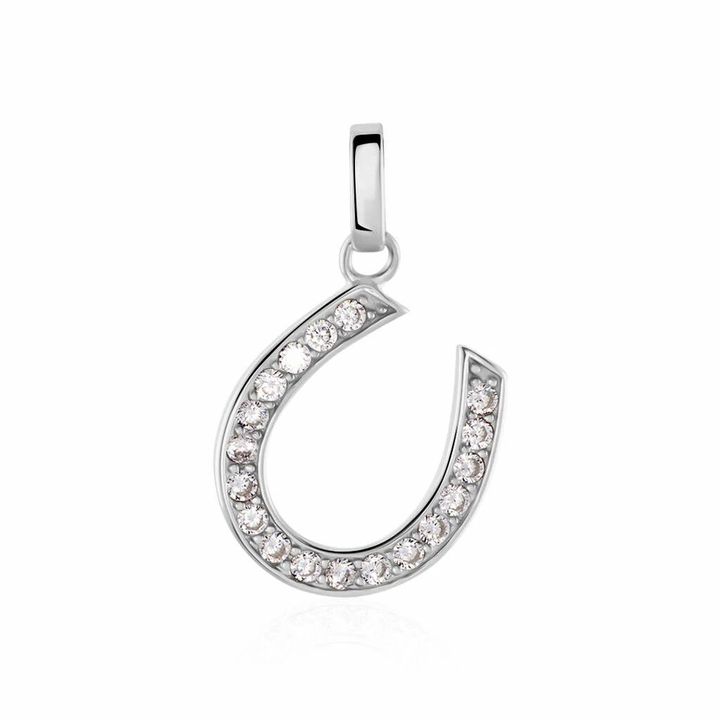 Pendentif Argent Blanc 925/1000 Fer A Cheval Pavage Oxydes De Zirconium