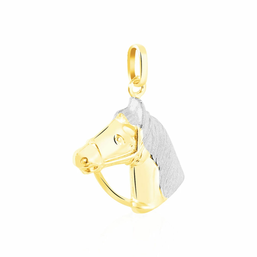 Pendentif Or Bicolore 375/1000 Motif Tete De Cheval