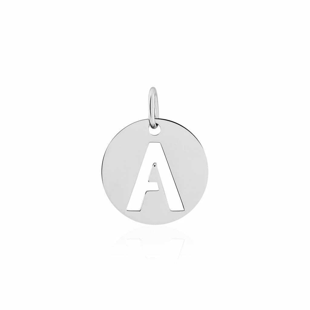 Pendentif Argent Blanc 925/1000 Pastille Lettre A Diametre 18mm