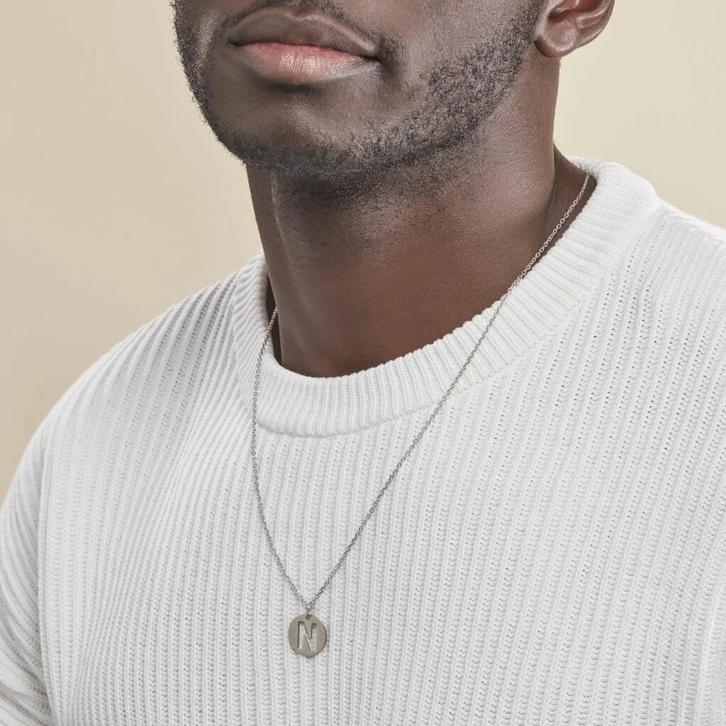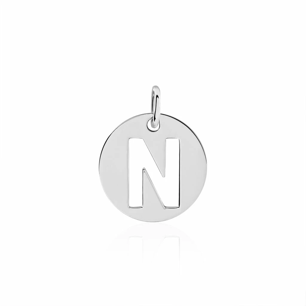Pendentif Argent Blanc 925/1000 Pastille Lettre N Diametre 18mm